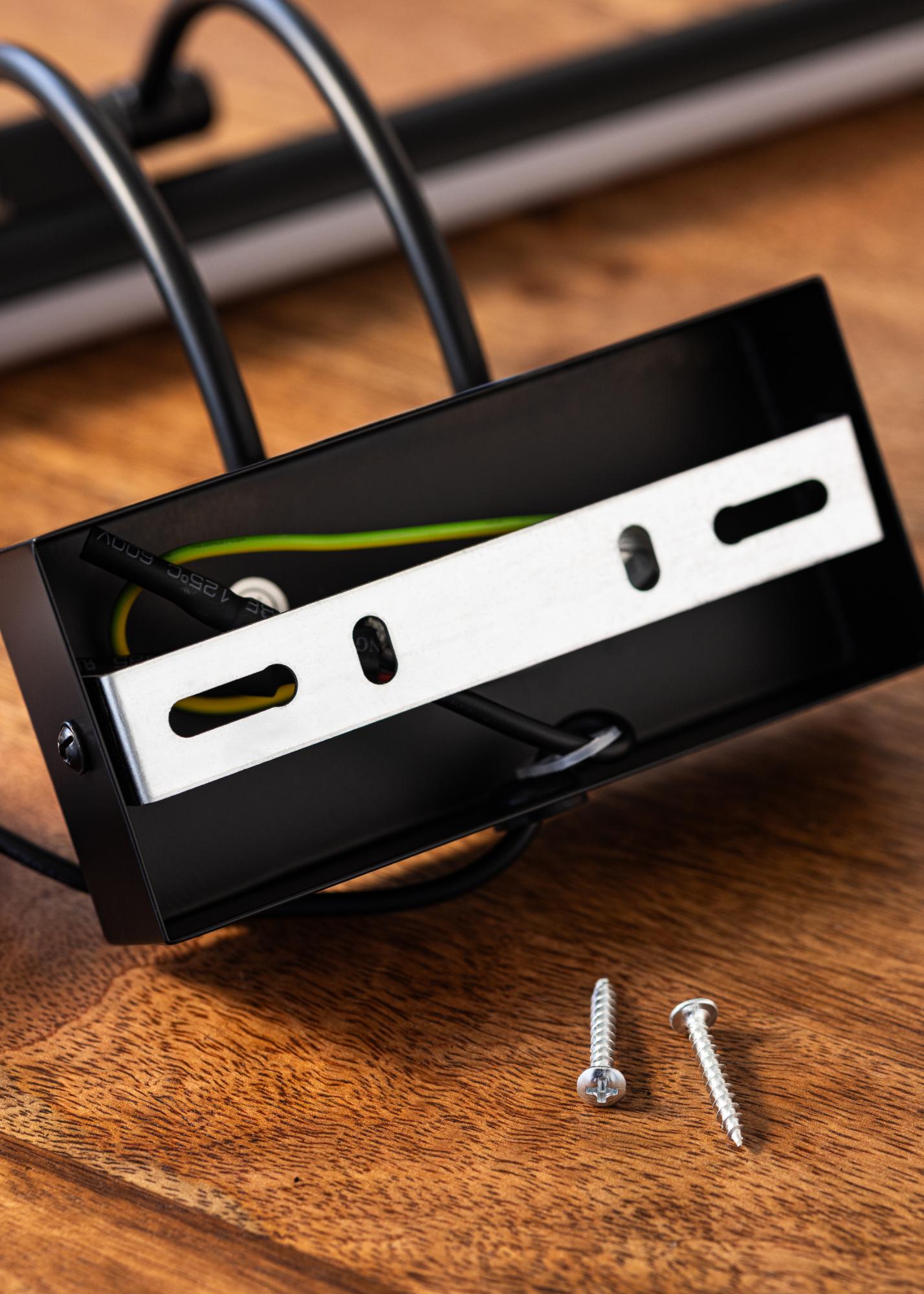 La finition noire moderne permet à cet éclairage de tableau de s'intégrer à la fois dans des intérieurs minimalistes et plus décoratifs. Avec son design discret et ses réglages de lumière flexibles, il devient un complément naturel à votre art, renforçant les détails et les couleurs des œuvres de manière élégante.