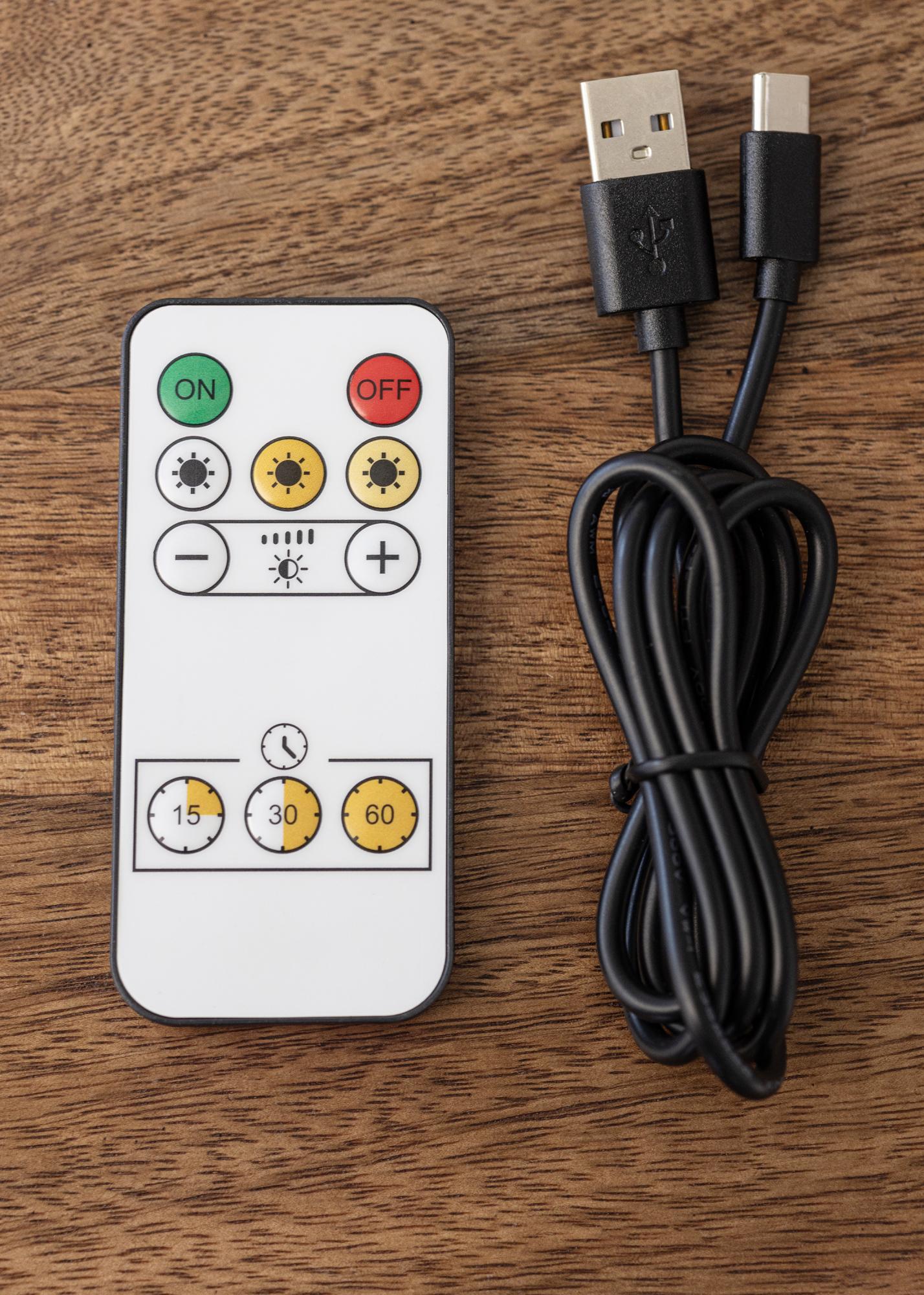 Avec la télécommande fournie, vous pouvez facilement ajuster la luminosité, la température de couleur et régler une minuterie pour 15, 30 ou 60 minutes. Cela vous permet d'adapter l'éclairage à vos besoins et d'économiser la batterie en éteignant automatiquement la lumière après un certain temps.