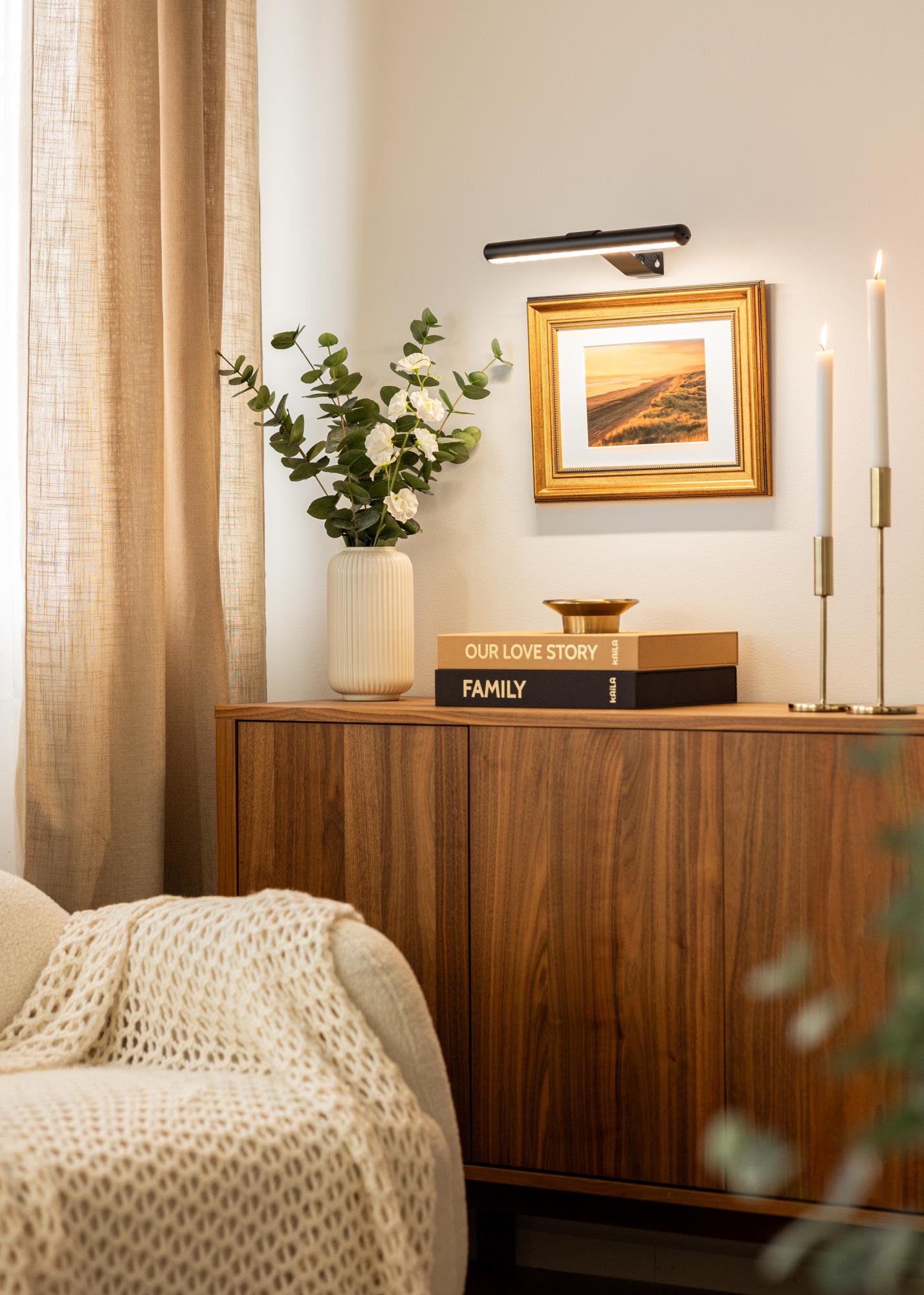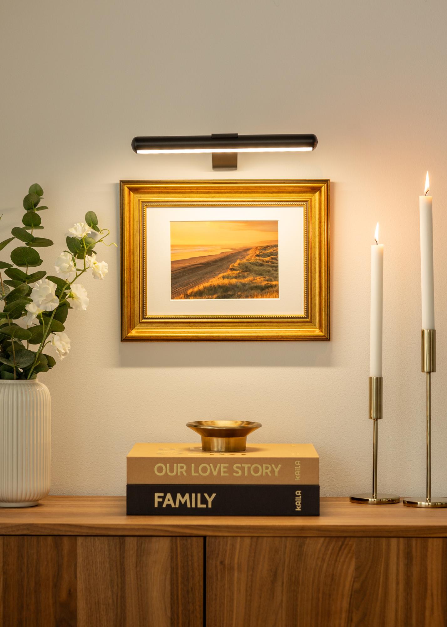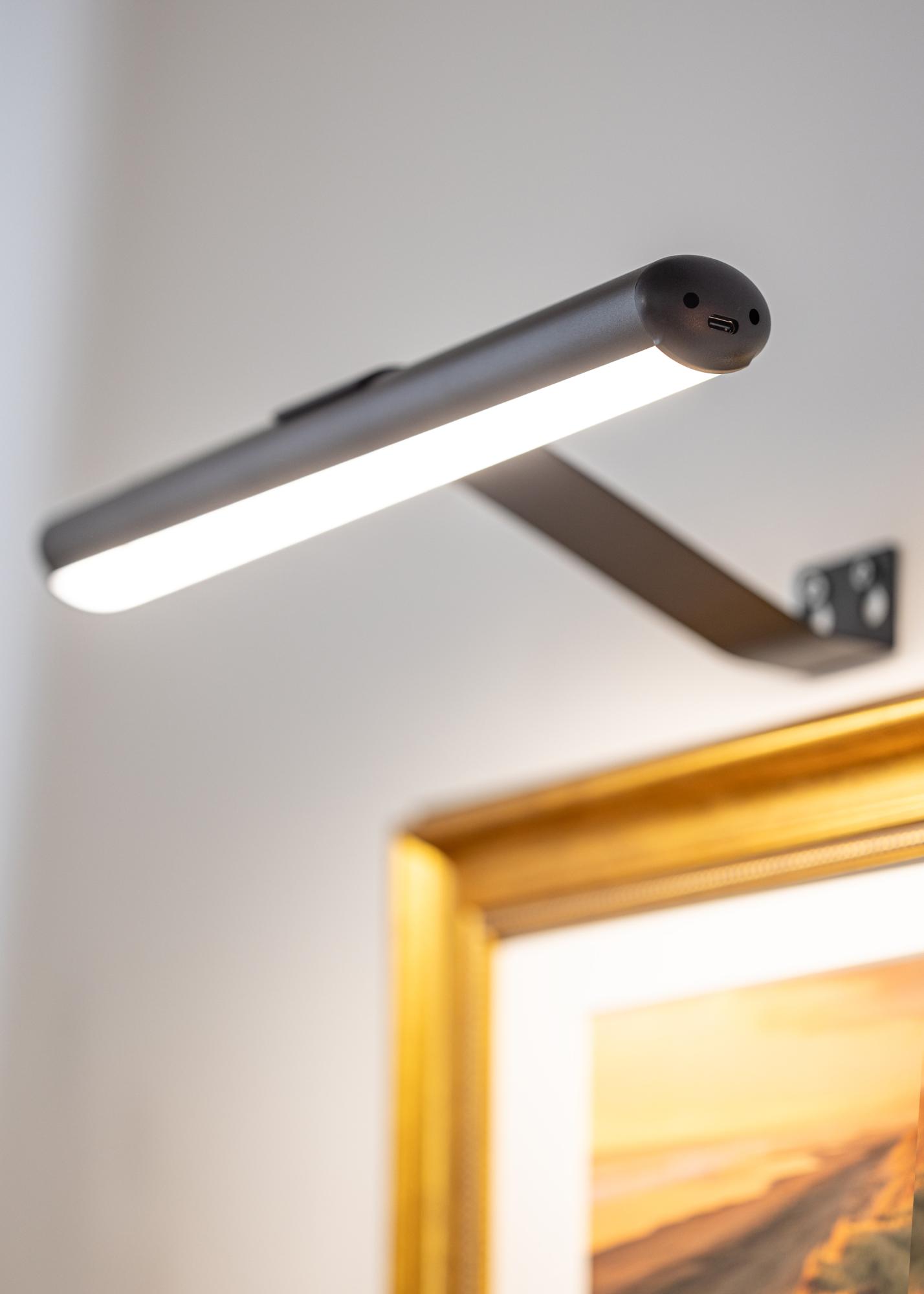 Cette lumière de tableau alimentée par batterie au design noir est une solution élégante et pratique pour mettre en valeur vos œuvres d'art sans avoir besoin de câbles. Avec une installation flexible, elle peut être placée n'importe où sur le mur, ce qui la rend parfaite pour les espaces où il n'y a pas de prise électrique à proximité. Avec sa profondeur compacte de 15 cm et une longueur de 33 cm, elle est idéale pour éclairer des œuvres d'art avec une largeur maximale allant jusqu'à 60 cm.
