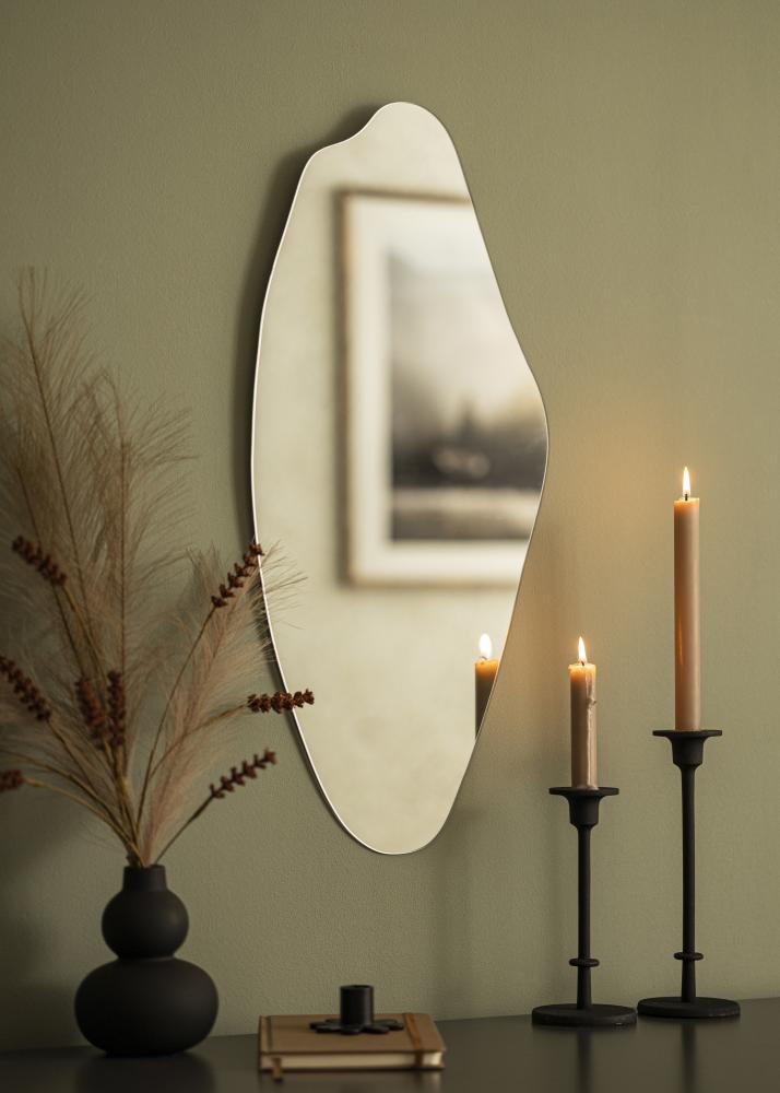 Voici un miroir de forme oblongue dans une jolie forme asymétrique, ce qui en fait un superbe détail d'intérieur convenant parfaitement aux foyers modernes. Le miroir est doté de supports muraux pratiques situés au dos et peut être accroché quel que soit le mur dans la pièce désirée – il peut aussi être utilisé dans une salle de bain !