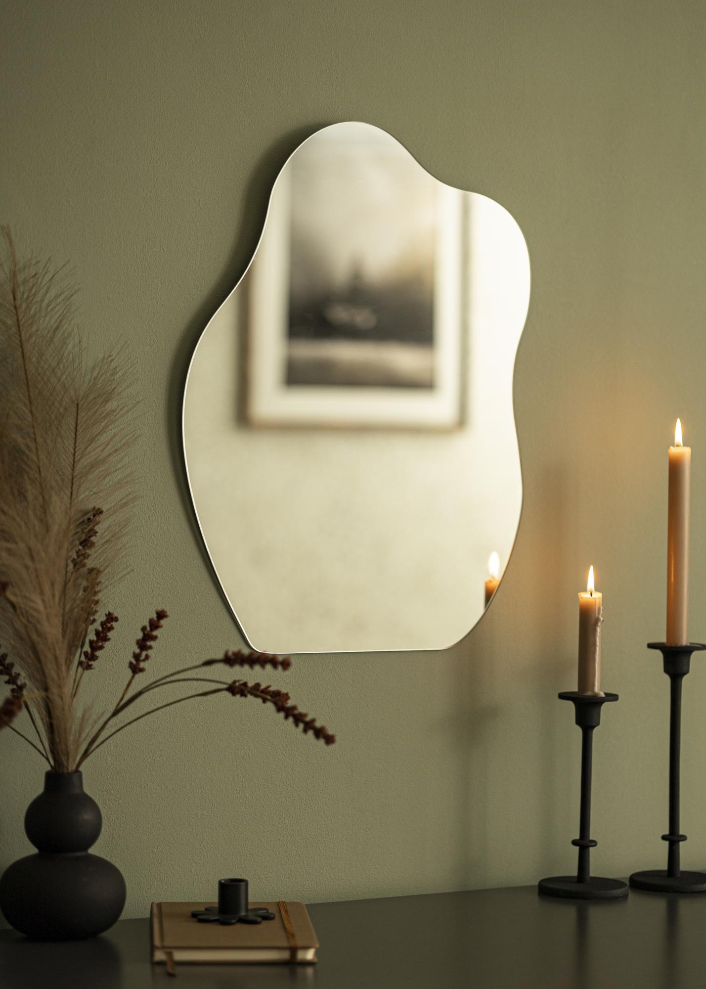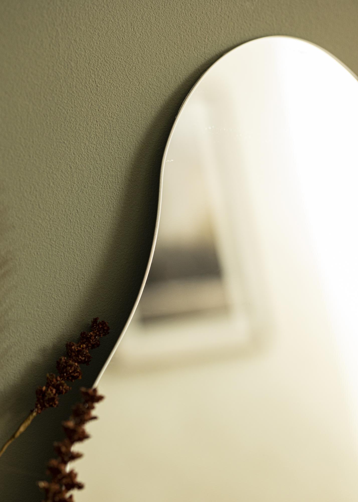 Ce miroir mural apportera de l'élégance et un côté ludique, avec sa forme ondulée donnant au miroir son aspect unique. Le bord inférieur est droit, ce qui permet au miroir d'être placé debout sur un meuble, adossé au mur. Vous pouvez bien évidemment aussi accrocher le miroir au mur !
