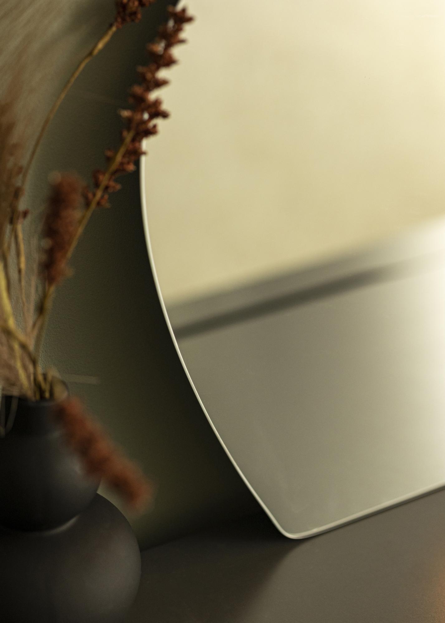 Le miroir est conçu sans cadre et avec un verre miroir très mince. Il convient tout aussi bien au-dessus d'une commode dans l'entrée comme dans la chambre des enfants - il est également adapté pour une utilisation dans une salle de bain.