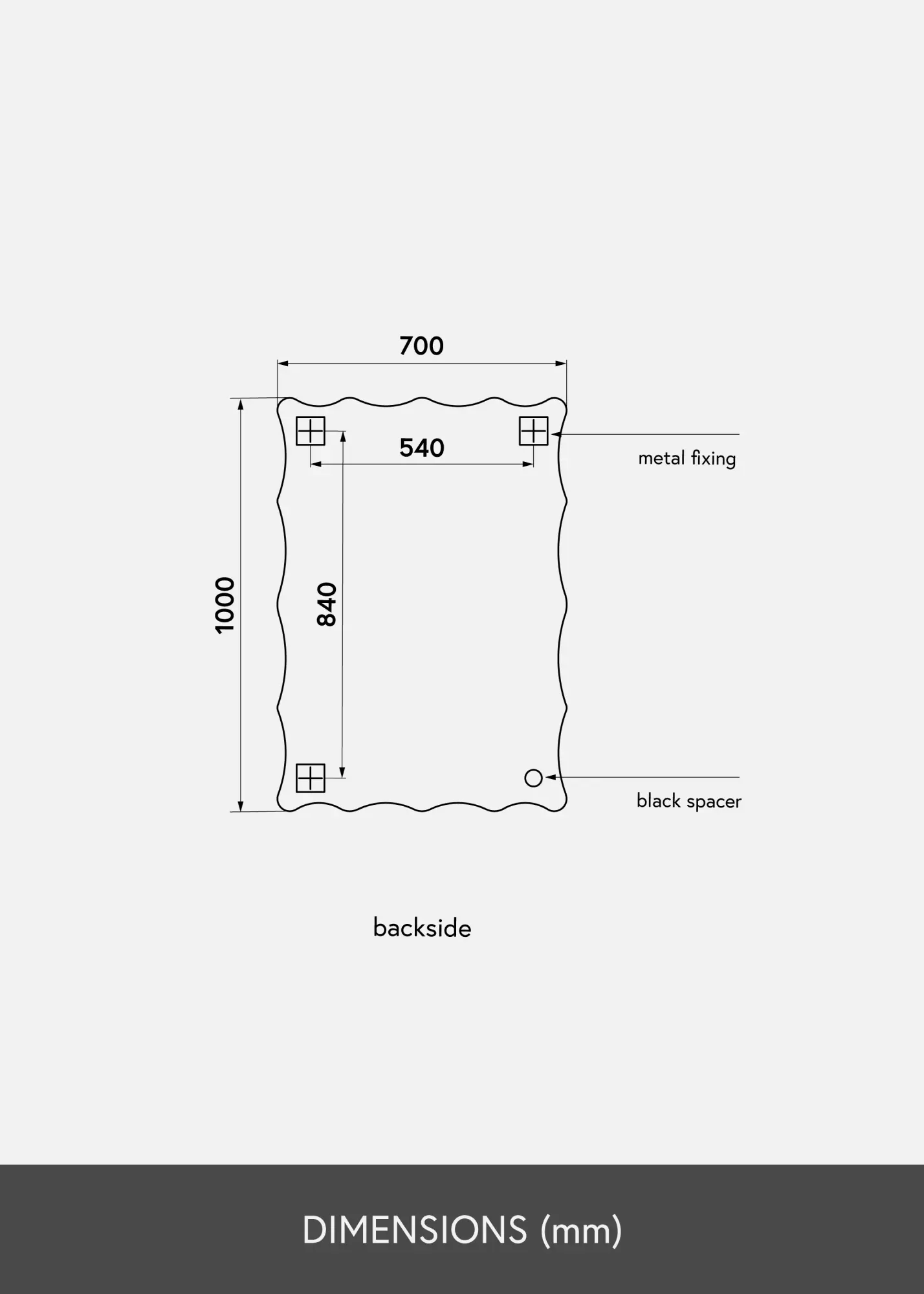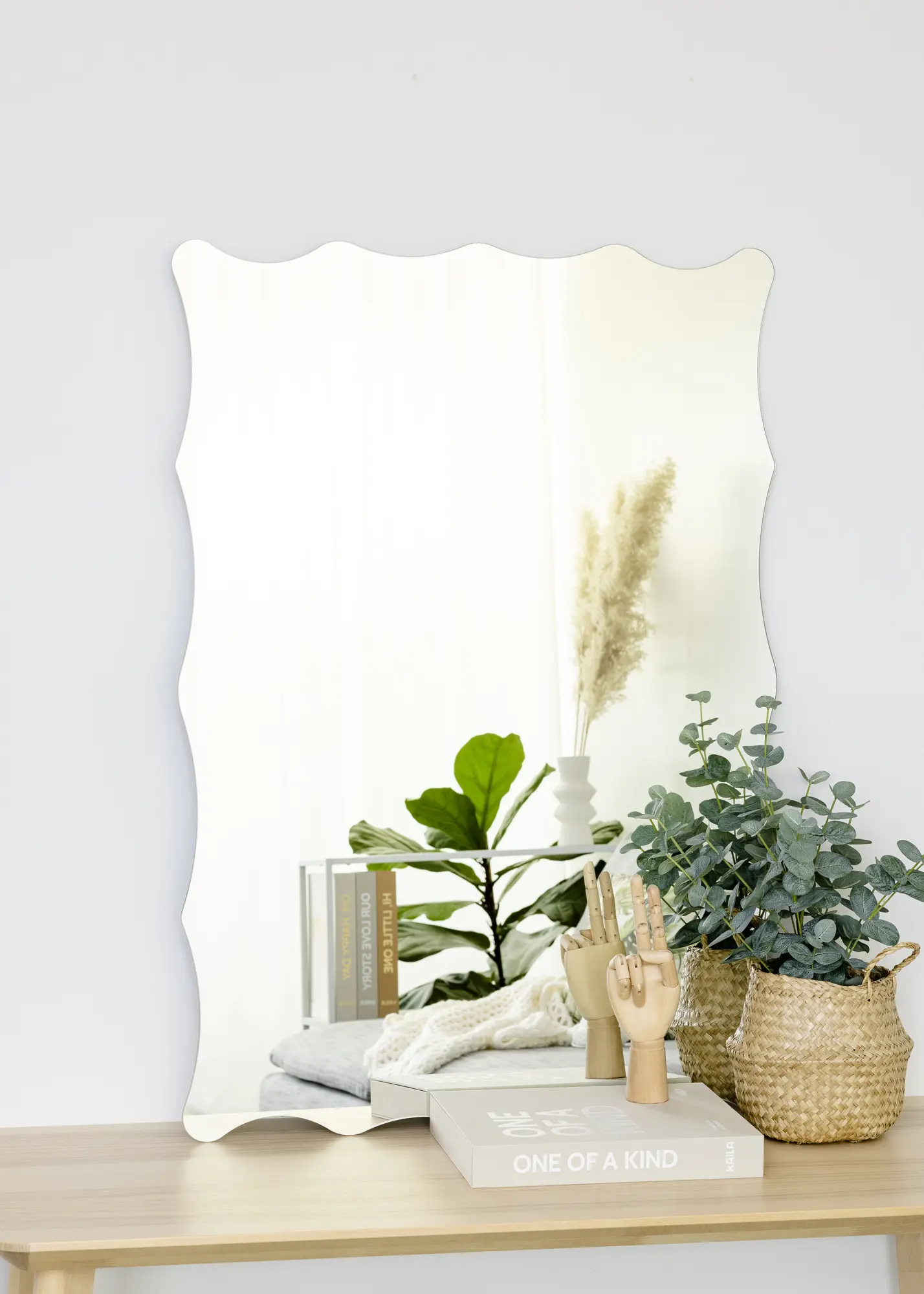 Miroir de KAILA, avec une belle forme ondulée pour une impression d'élégance rehaussée. Ce miroir mural est un détail de décoration parfait dans la chambre ou le salon grâce à son design intemporel. Le miroir a un design classique avec un verre miroir fin et incolore et un support mural qui permet une suspension facile. Ce miroir a une taille de 70x100 cm.