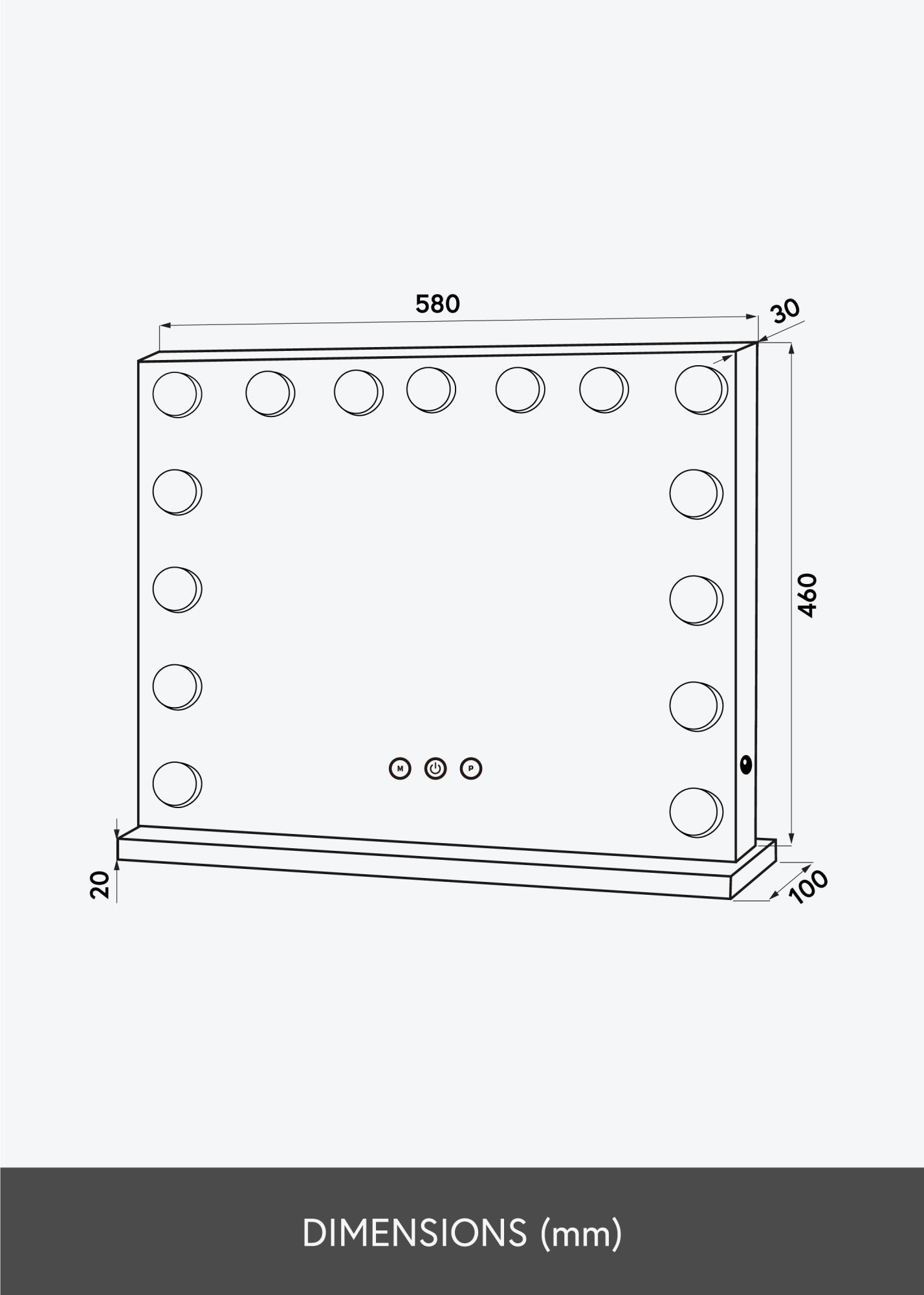Avec ce miroir, vous pouvez créer un coin maquillage luxueux dans votre maison. Le miroir a une forme rectangulaire élégante et un éclairage intégré qui fournit une lumière uniforme pour vous refléter. Son design élégant permet au miroir d'être également utilisé comme un détail d'intérieur tendance fournissant au salon ou au hall d'entrée un éclairage d'ambiance. L'éclairage dimmable du miroir comprend 15 LED qui encadrent la surface réfléchissante de 58x46 cm. La lumière s'ajuste à l'aide des boutons tactiles à l'avant du miroir. Les boutons tactiles sont marqués avec des lettres - "P" pour le réglage de la luminosité et "M" pour le réglage de la température de couleur.