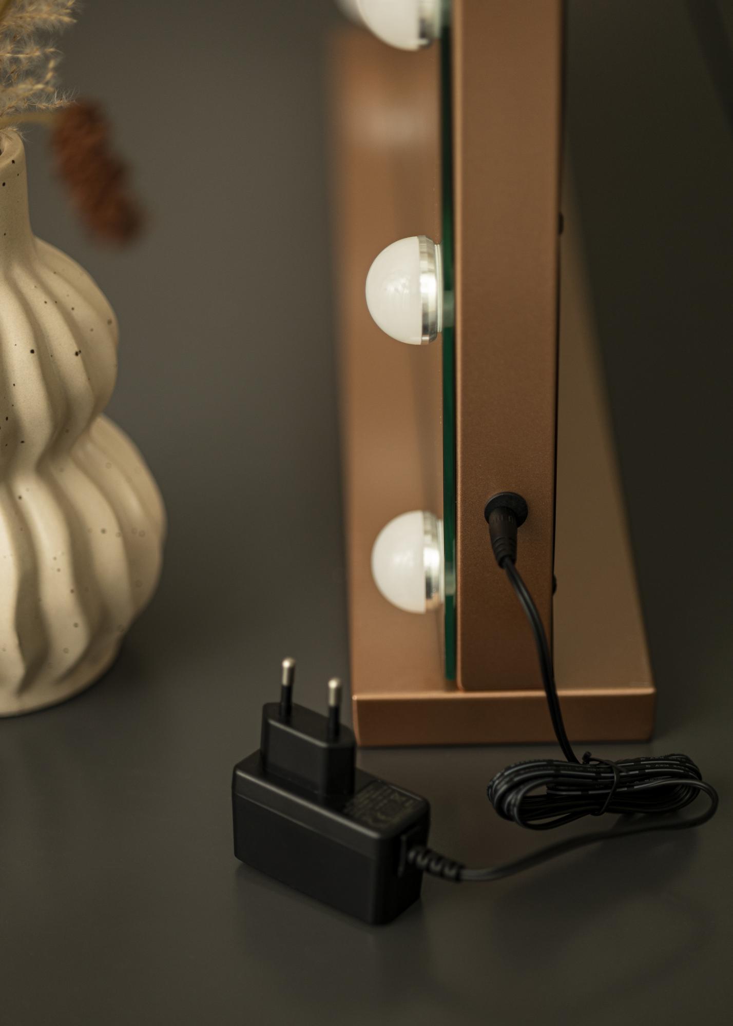 Ce miroir à maquillage deviendra un détail tendance dans votre décoration d'intérieur que ce soit dans le hall d'entrée ou le salon – ou peut-être songez-vous à l'installer sur la coiffeuse pour créer un coin maquillage luxueux ? Le miroir se présente dans un design inspiré par Hollywood avec ses grandes ampoules LED incrustées et son socle rose-doré. Le socle peut être retiré et remis, afin que vous puissiez choisir si vous voulez votre miroir posé ou bien accroché au mur.