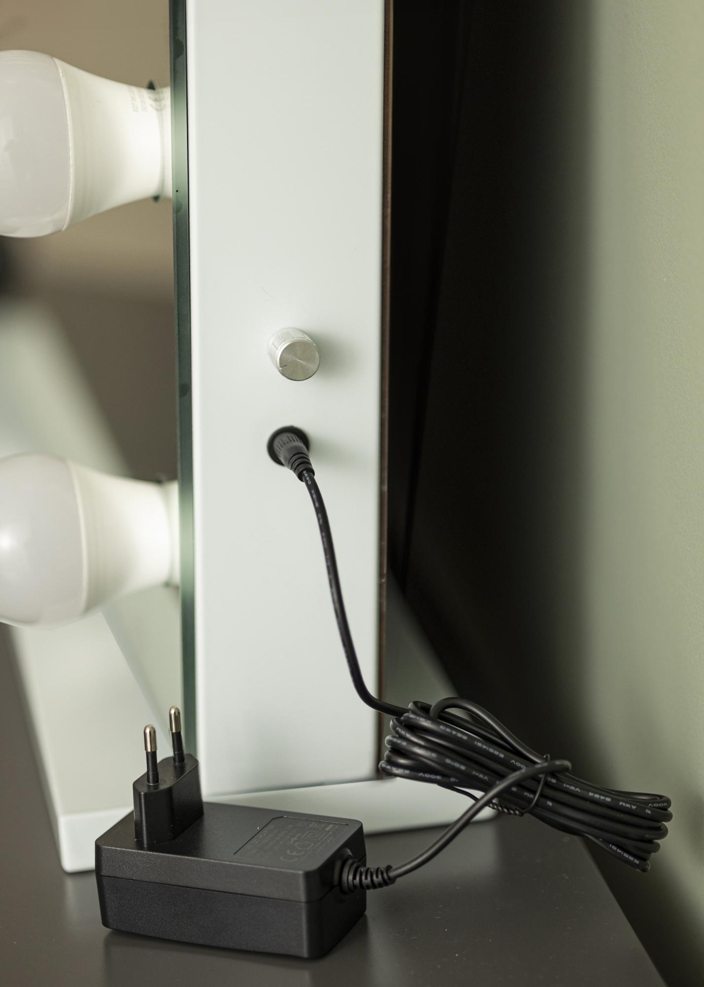 Voici un miroir à maquillage unique dont le design fait références aux loges d'artistes à Hollywood. La grande surface du miroir de 80x65 cm est encadrée de 14 ampoules avec un culot E27. L'effet donne une lumière blanche froide et uniforme qui convient aussi bien lorsque vous vous maquillez que lorsque vous souhaitez une source de lumière tendance sur une table d'appoint dans le salon. L'éclairage peut également s'atténuer, pour encore plus de possibilité. Il suffit de tourner le bouton situé sur le côté du miroir et de régler la lumière selon vos souhaits.