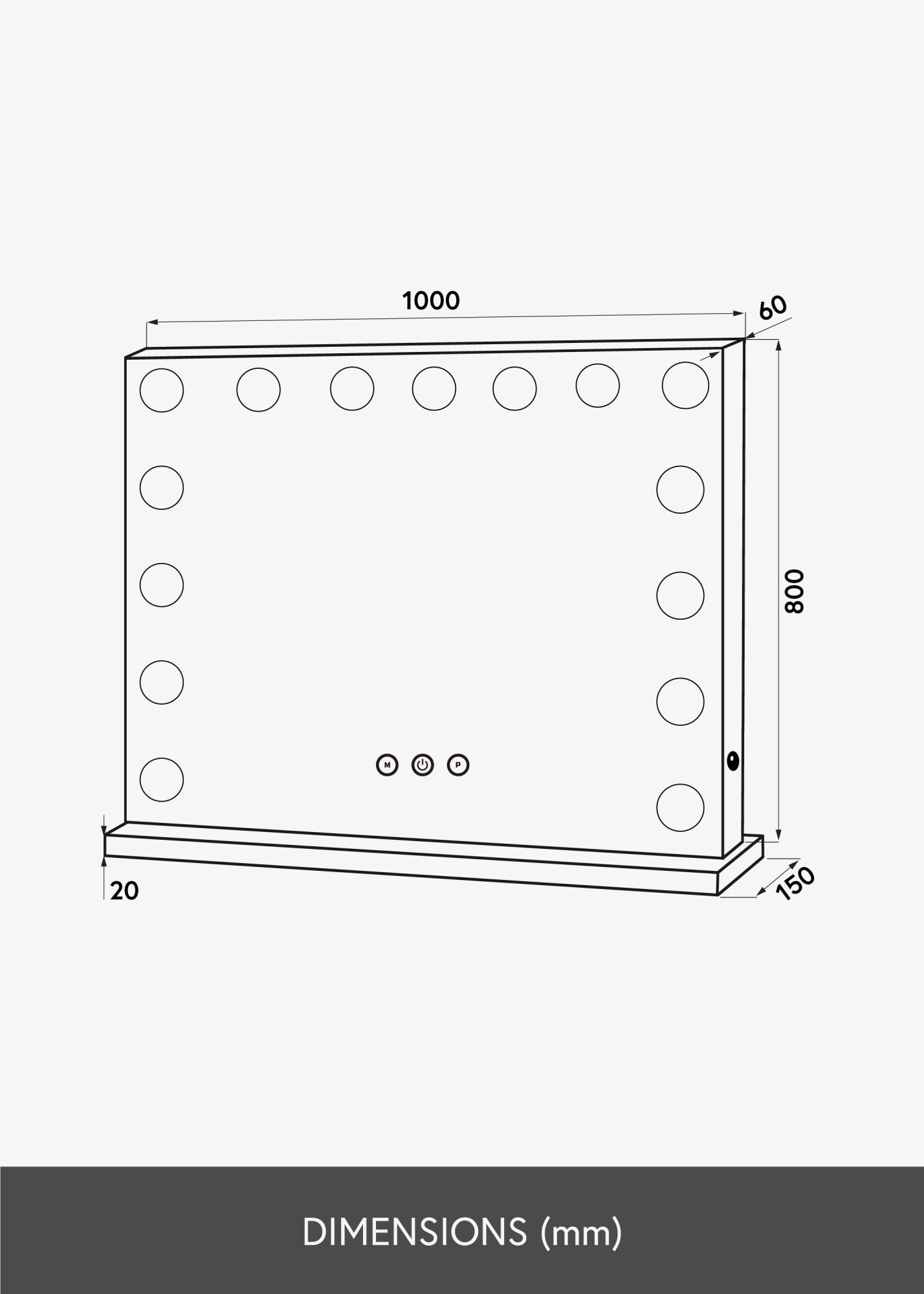 Obtenez une atmosphère Hollywoodienne dans votre intérieur grâce à ce miroir à maquillage tendance. Ce grand format, avec une surface réfléchissante d'une totalité de 100x80 cm, apportera un véritable effet "waouh" à votre coin maquillage. Vous pouvez choisir d'accrocher le miroir au mur ou de le poser sur son socle. À savoir, ce miroir a un socle inclus qui se fixe facilement au miroir.