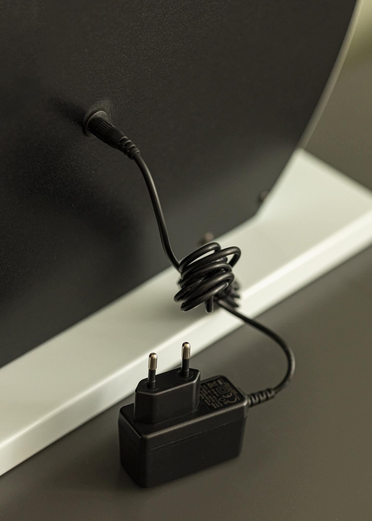 Voici un luxueux miroir à maquillage avec éclairage LED incrusté qui procure une lumière uniforme sur votre visage lorsque vous vous reflétez. L'éclairage comprend 10 LED qui sont positionnées sur le pourtour de sa surface réfléchissante. La lumière peut être ajustée selon vos goûts et vos envies, car vous avez la possibilité de régler à la fois la luminosité et la température de couleur. Les réglages de l'éclairage se font via les boutons tactiles sur le bord inférieur du miroir marqués par des lettres. Via le bouton marqué d'un "M", vous pouvez choisir la température de couleur entre lumière chaude, froide et naturelle. Le bouton marqué "P" est utilisé pour atténuer la lumière. Il y a aussi un bouton marche/arrêt qui sert à allumer ou éteindre l'éclairage. Le raccordement électrique s'effectue avec une prise.