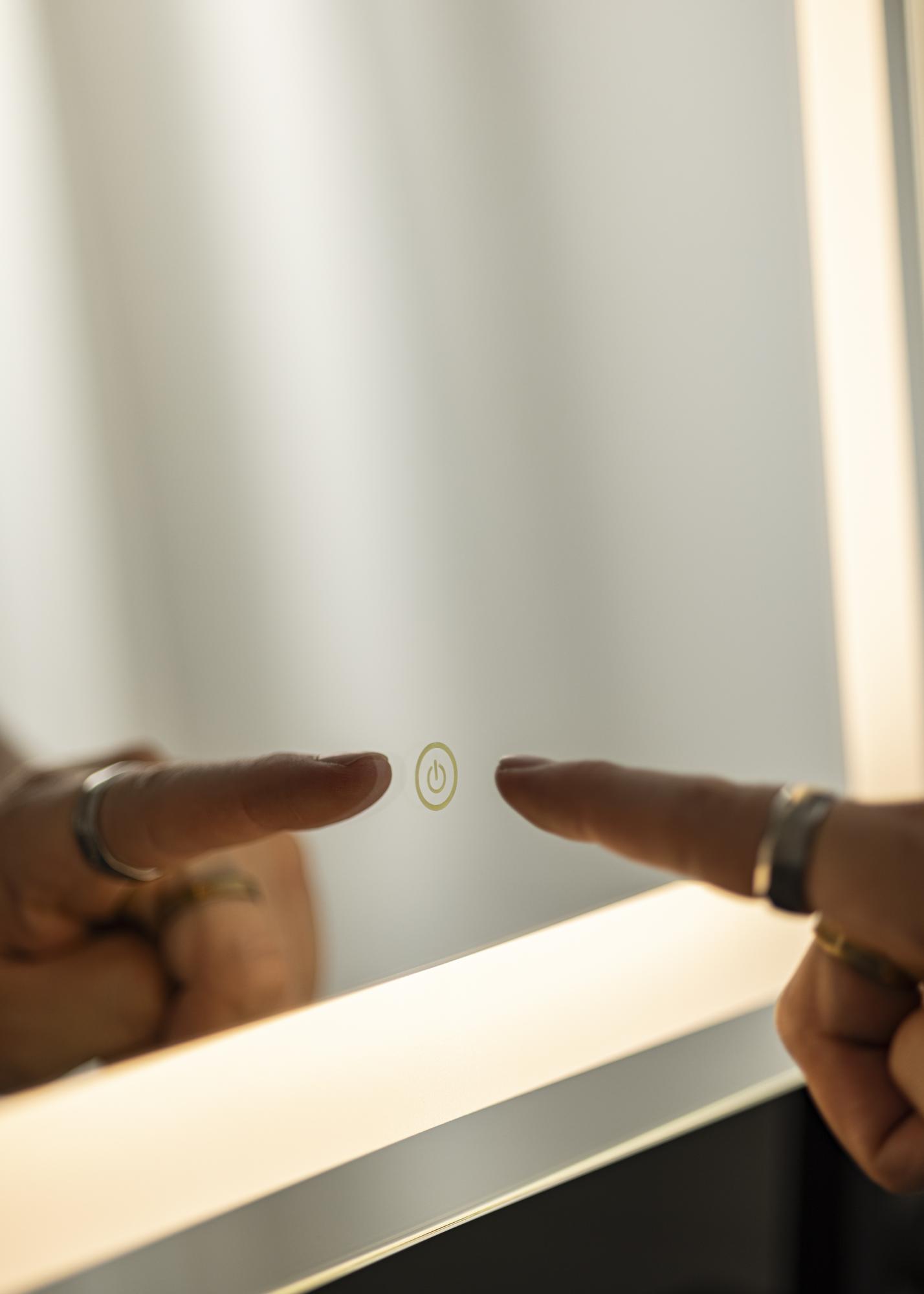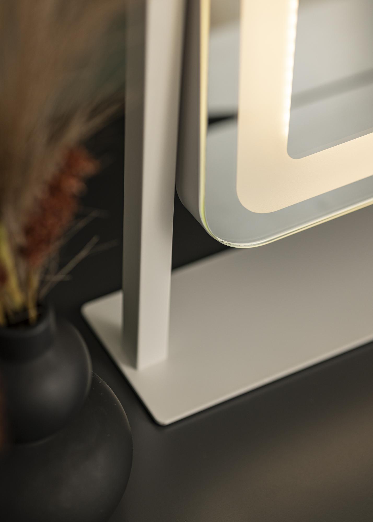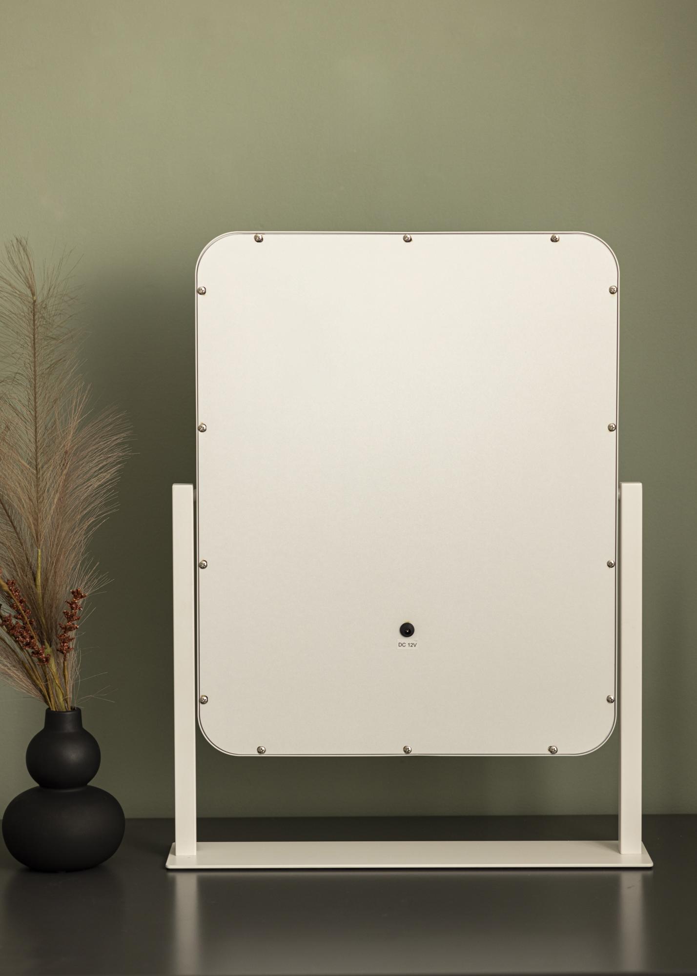 Un miroir de maquillage pour vous qui êtes attirés par un design tendance ! Ce miroir au design nordique par KAILA a une élégante teinte blanche et un bord dépoli avec éclairage LED intégré autour du verre miroir. L'éclairage LED donne une lueur blanche chaude en 3000K, ce qui est parfait lors du maquillage. Vous pouvez facilement allumer l'éclairage en appuyant sur le bouton tactile de l'écran et régler la luminosité en maintenant le bouton enfoncé pendant quelques secondes. Le miroir de maquillage mesure 45x60 cm et peut être incliné pour que vous puissiez facilement vous refléter sous différents angles !