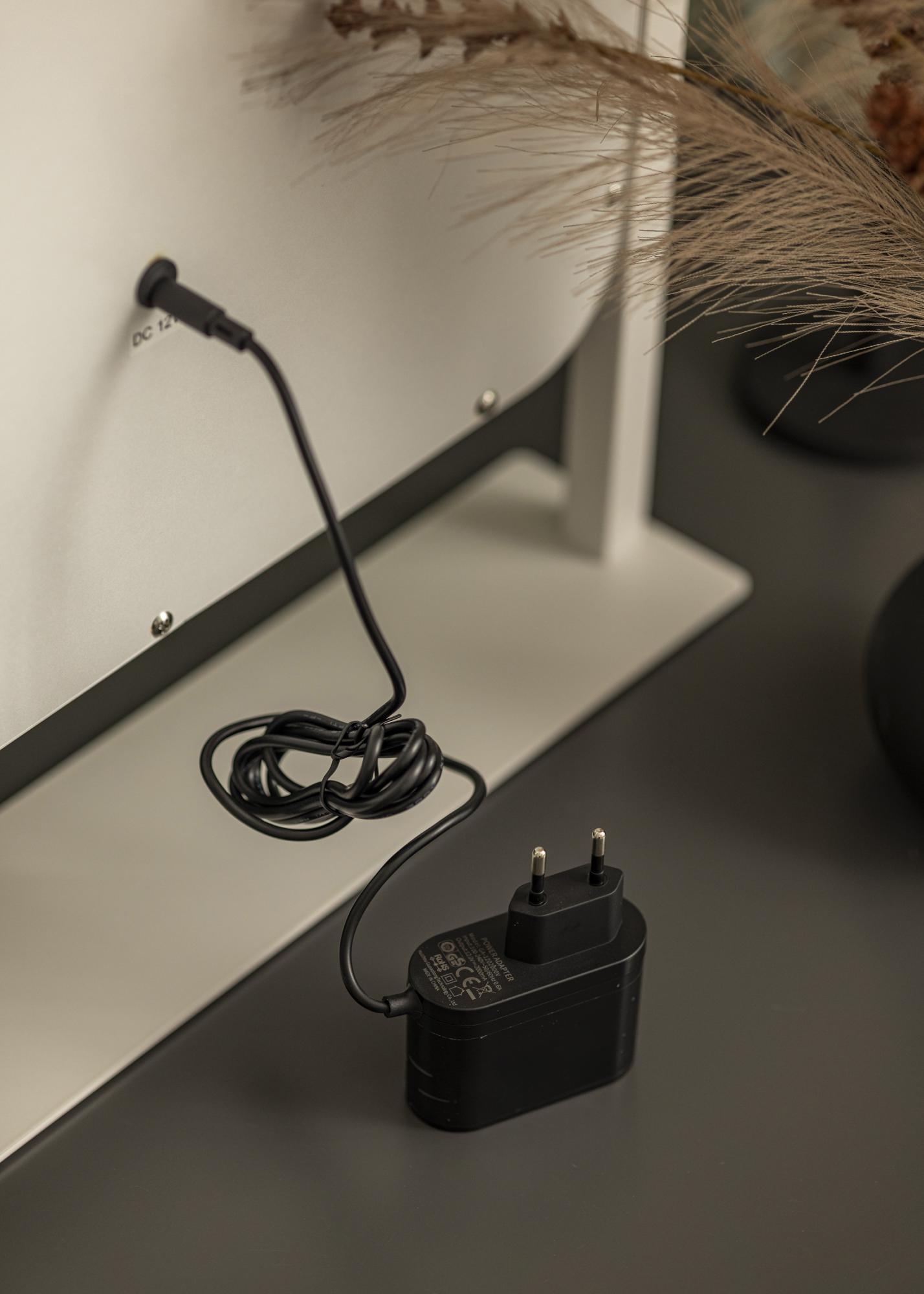 L'éclairage du miroir se compose de LED. Les sources lumineuses ne peuvent pas être remplacées mais elles ont une durée de vie correspondant au cycle de vie du produit même. Après 50 000 heures, on estime que l'intensité lumineuse est réduite d'environ 50% par rapport à son intensité d'origine. Branchement électrique avec prise.
