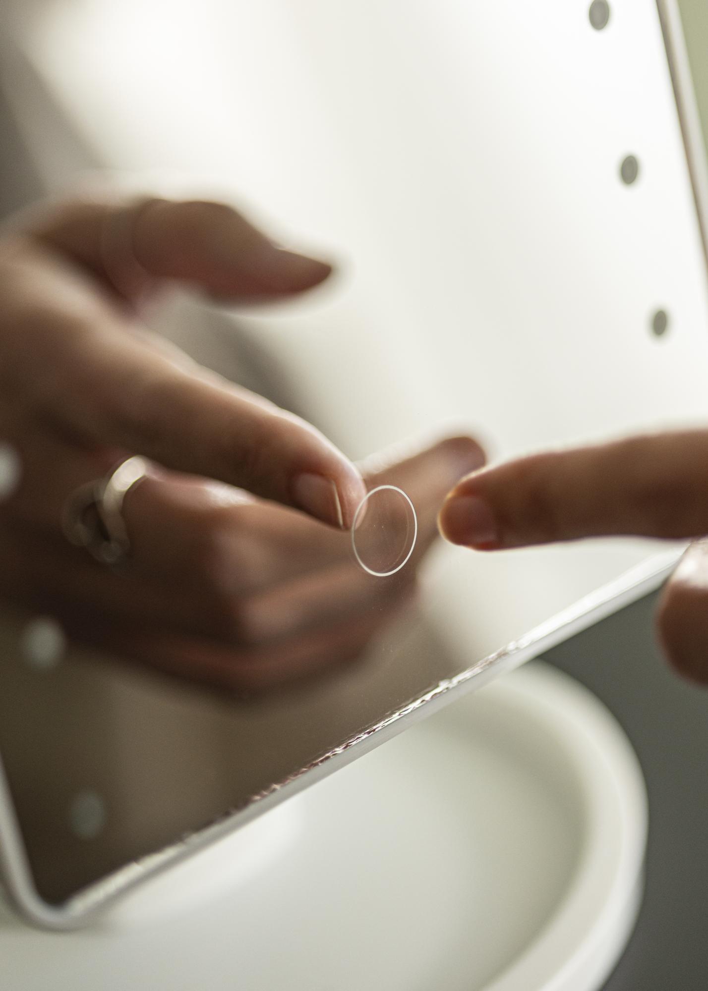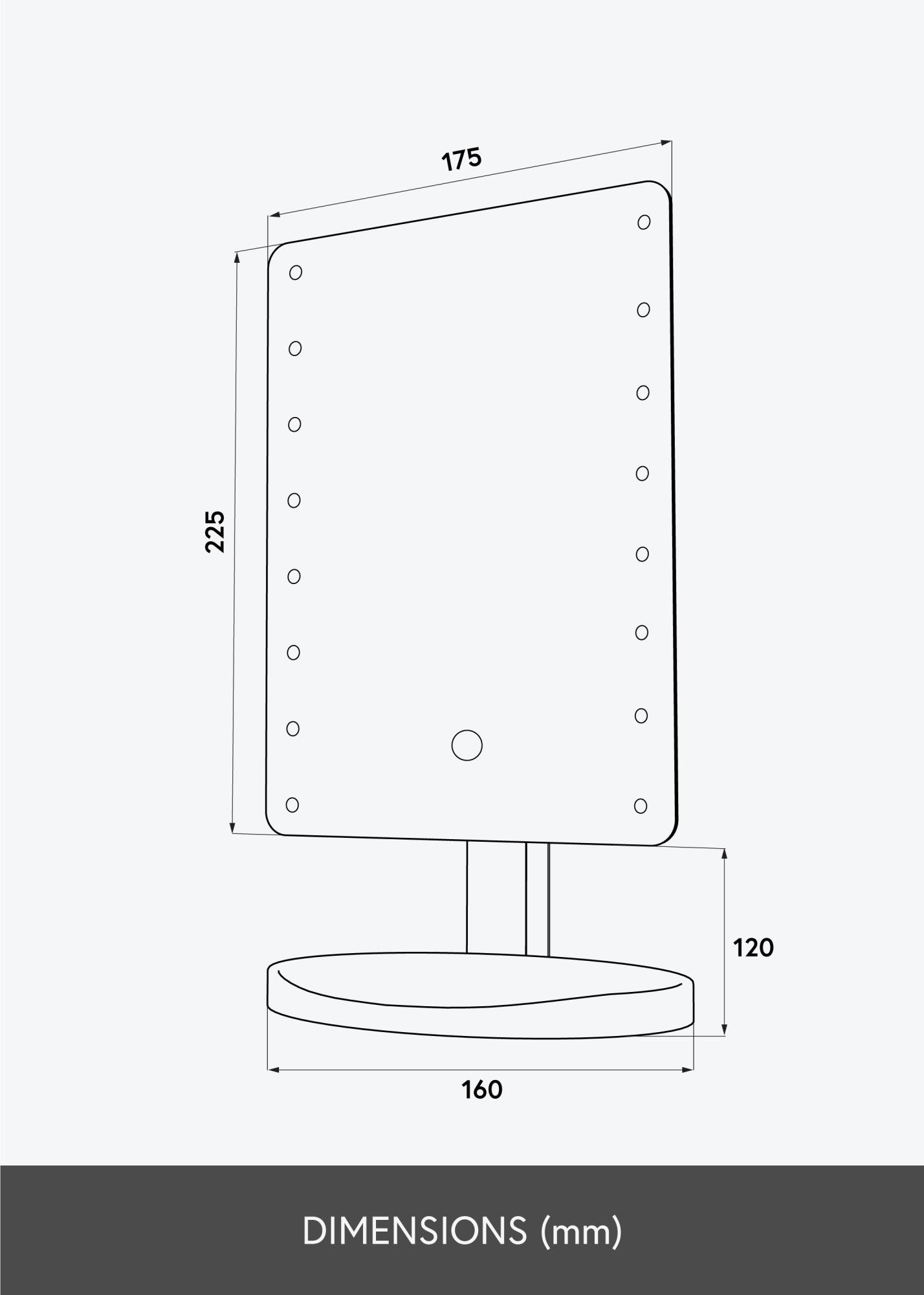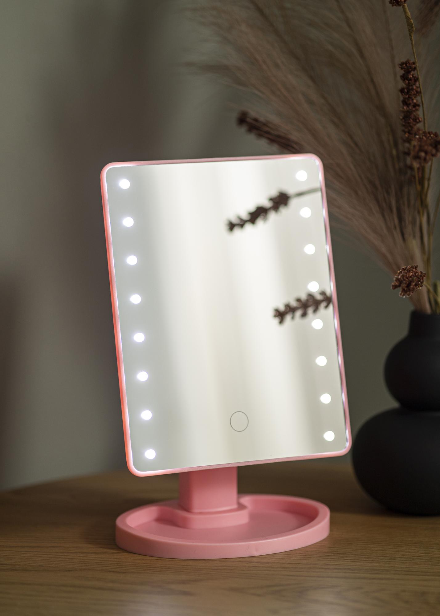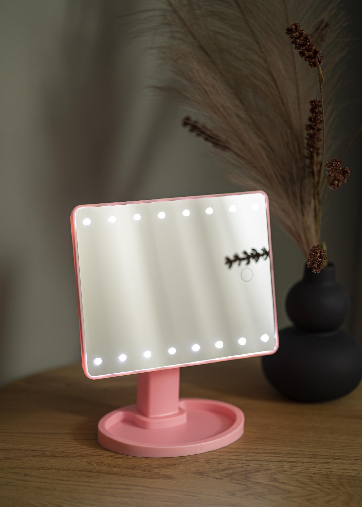 Ce miroir à maquillage est un choix idéal pour ceux qui désirent un petit miroir dans un joli design. Sa teinte rose en fait une jolie touche de couleur, tandis que l'éclairage LED intégré fournit une lumière blanche froide et uniforme idéale pour vous reflétez. Vous allumez le miroir à l'aide d'un interrupteur à l'arrière du miroir. L'éclairage peut aussi être atténué, afin que vous puissiez régler la luminosité que vous préférez. La gradation se fait à l'aide du bouton tactile sur l'avant.