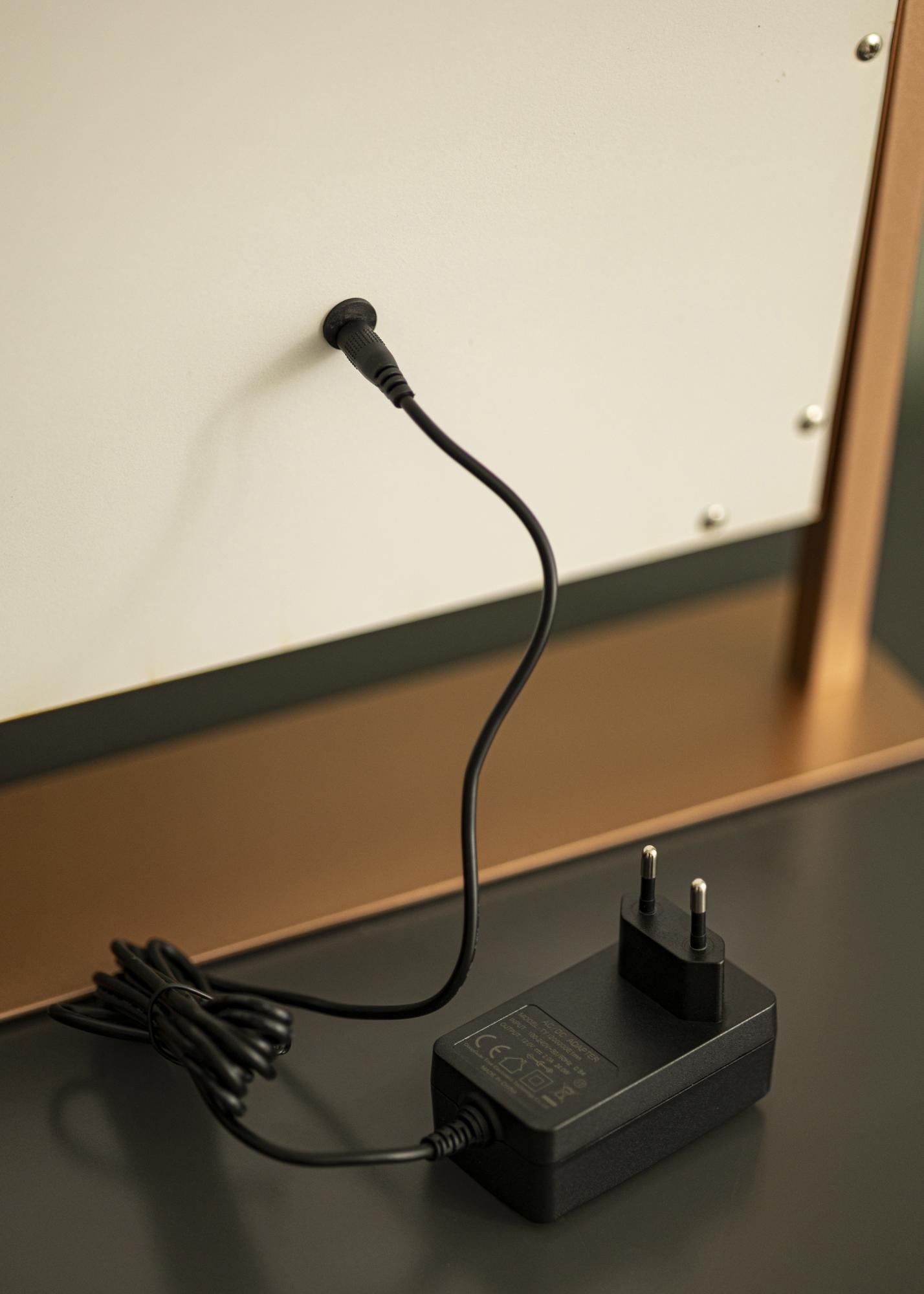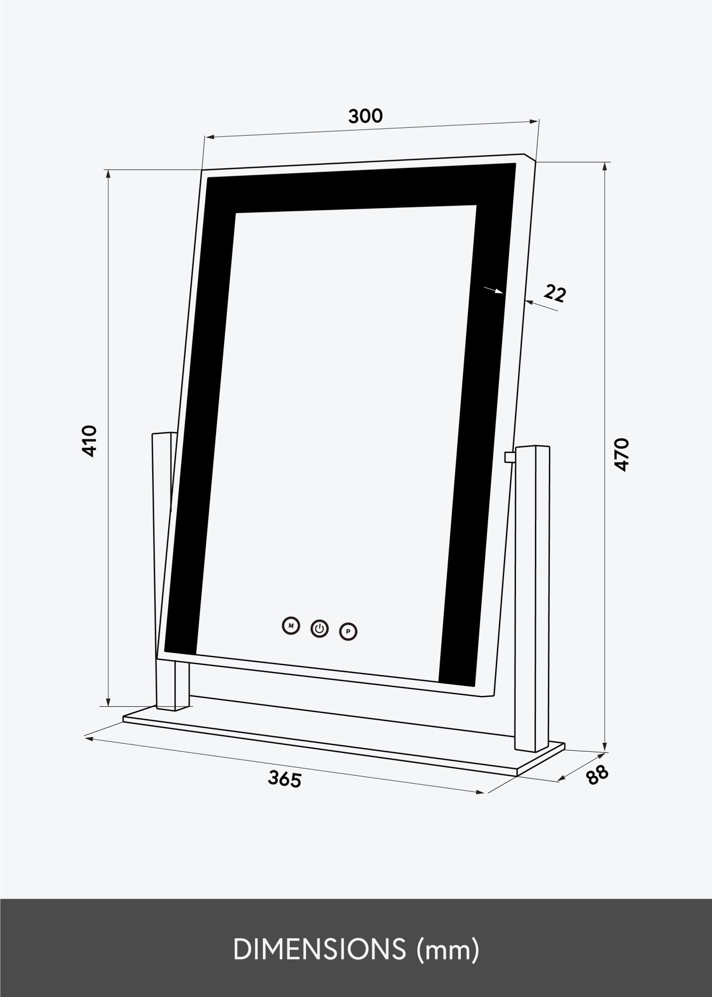 Ce miroir de maquillage se place à la verticale dans votre coin maquillage, dans le salon ou dans toute autre pièce que vous souhaitez parer d'un joli miroir. La façon dont le miroir est conçu vous permet également d'incliner la surface réfléchissante. Le raccordement électrique se fait via une prise de courant.