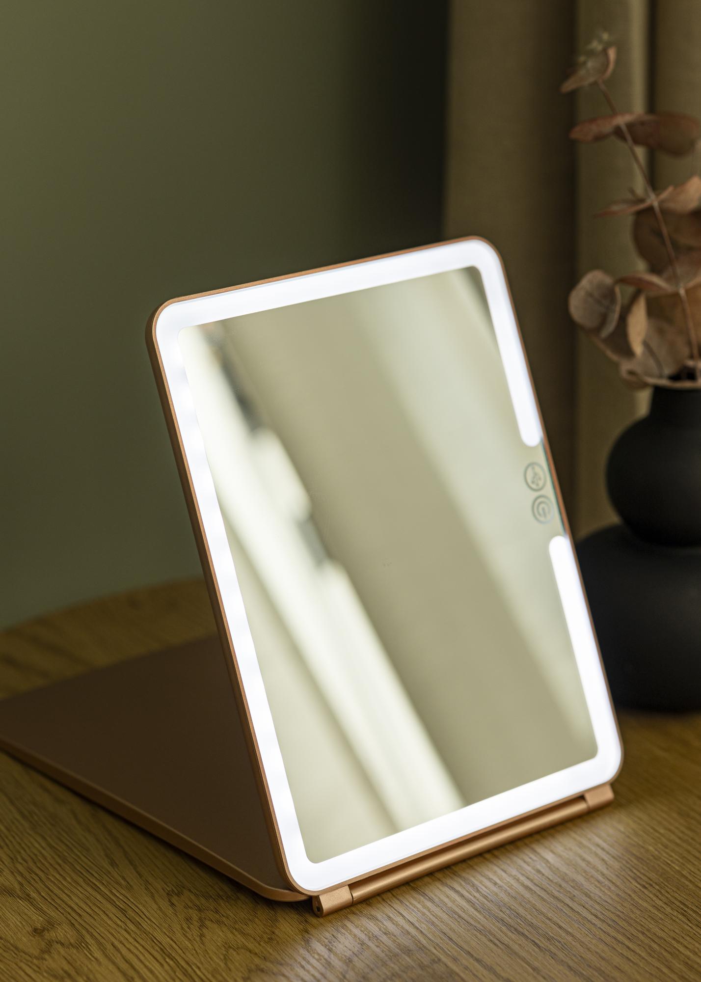 KAILA Miroir de maquillage Travel LED Rechargeable Rose doré 19x25 cm