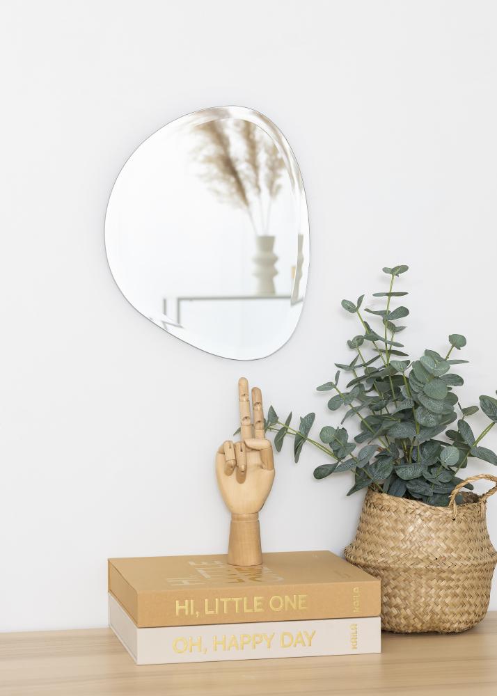 Ce miroir mural de KAILA a une élégante forme asymétrique rappelant une goutte. Le miroir est très fin et n'a pas de cadre, ce qui, en combinaison avec le luxueux bord à facettes, renforce d’autant l'aspect élégant et moderne. C'est un miroir mural très décoratif qui attirera assurément les regards, peu importe la pièce où il est placé : aussi bien dans le salon que dans l’entrée ou la chambre. Le miroir mesure 30x35 cm.