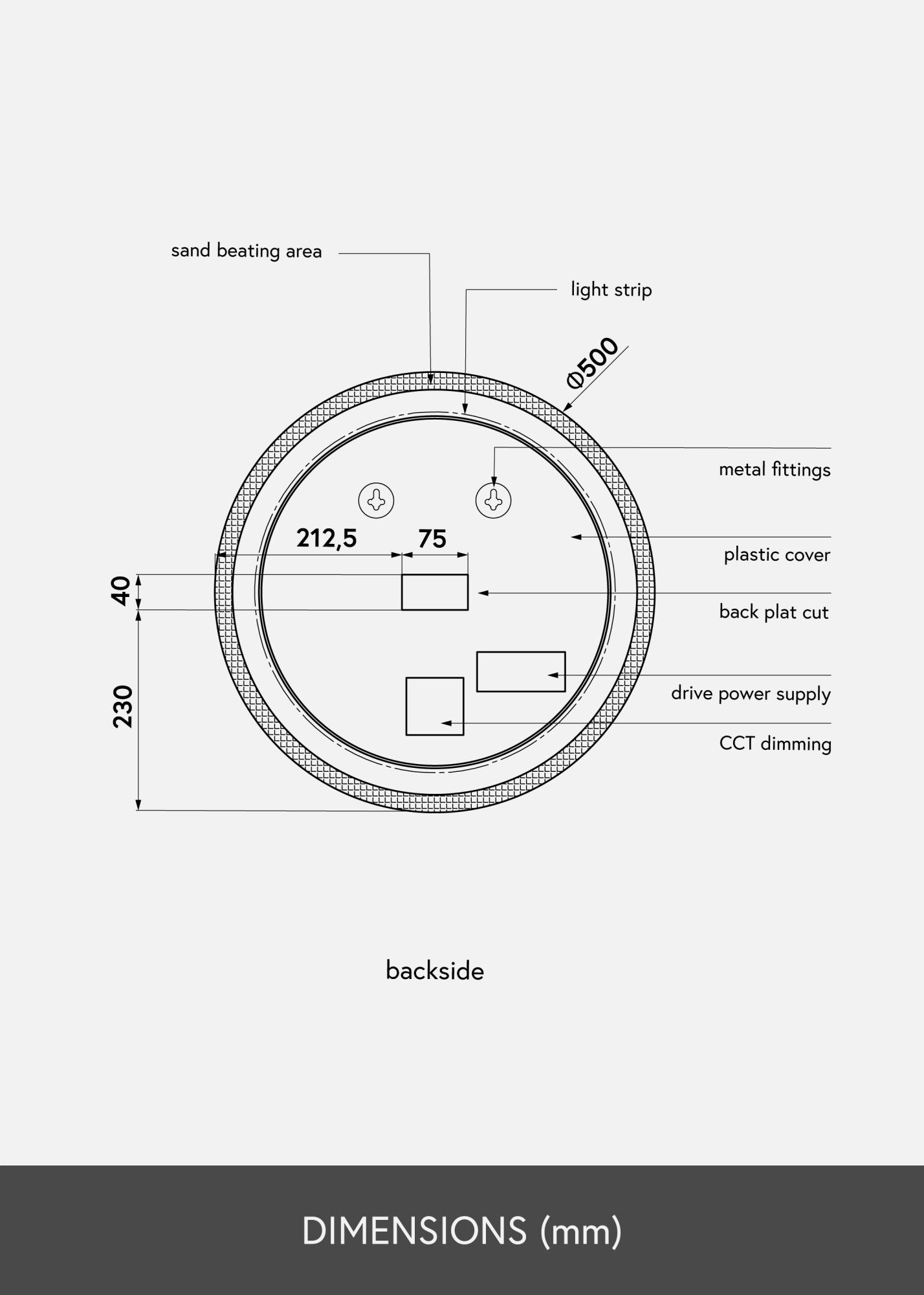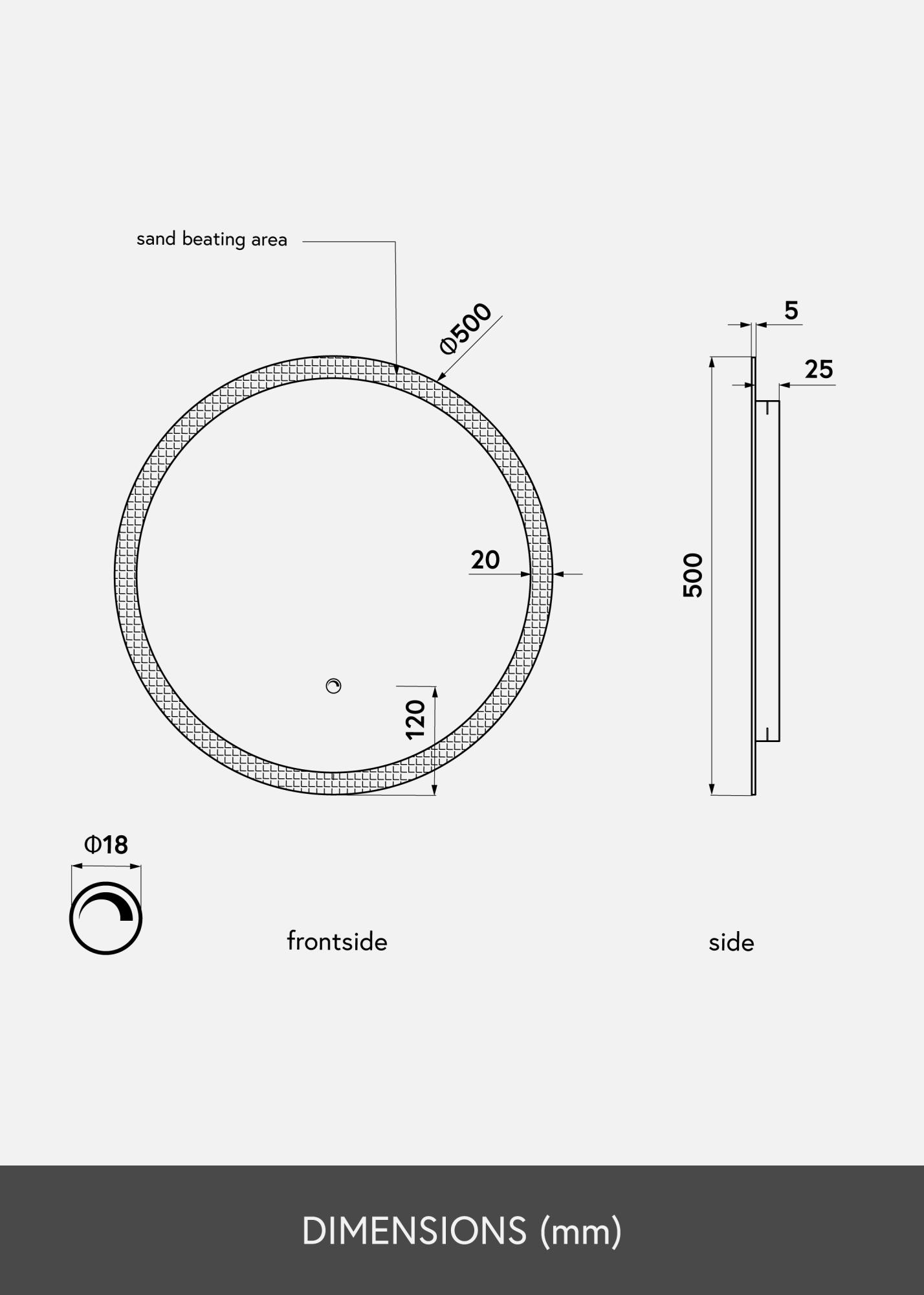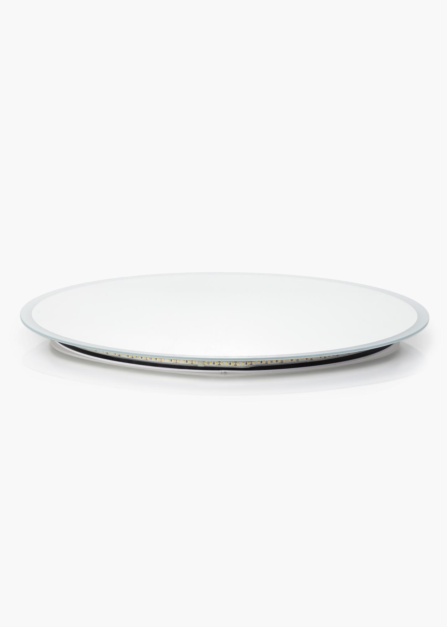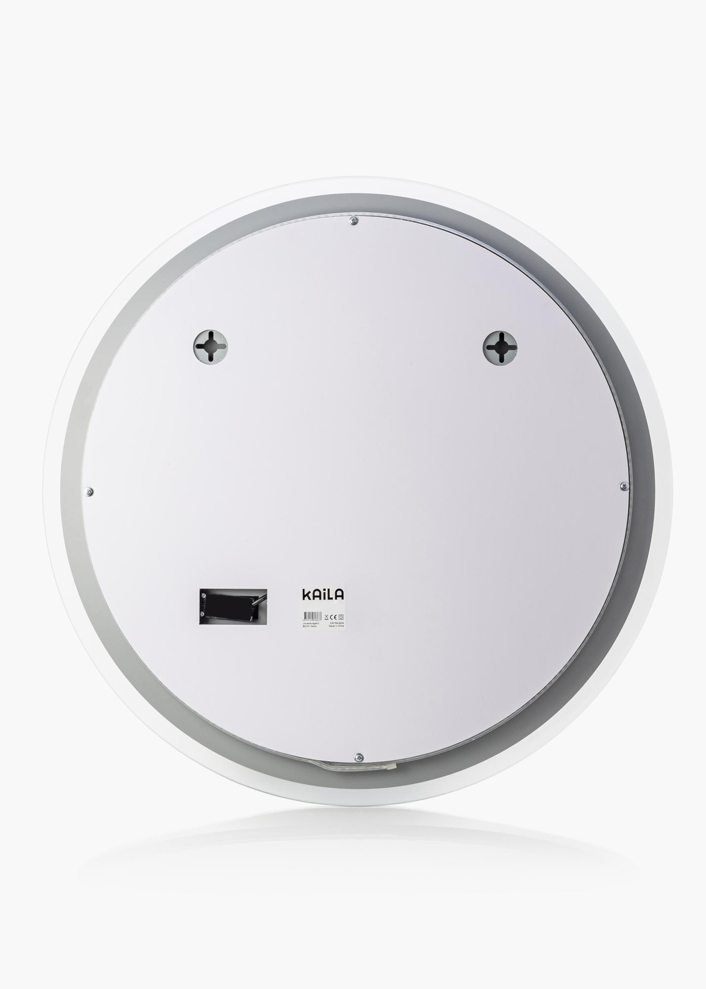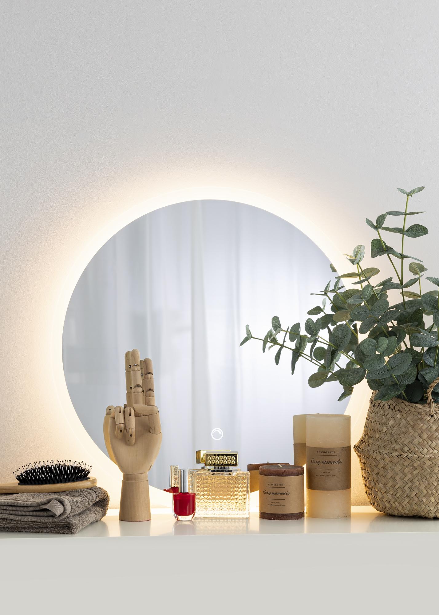 Voici un miroir de salle de bain rond classique et élégant. Le miroir est encadré par des bords dépolis avec un éclairage LED intégré. L'éclairage diffuse une lumière par l'arrière du miroir et projette une agréable lueur blanche chaude vers l'avant en 3000K. L'éclairage peut s'atténuer et vous pouvez facilement régler la puissance de la luminosité en maintenant le bouton enfoncé pendant quelques secondes. La prochaine fois que vous activez l'éclairage, le miroir se souviendra de la luminosité sur laquelle il a été réglé. Le miroir est doté de supports muraux et il est adapté pour les salles de bain. Le miroir de salle de bain est destiné à une installation fixe et se connecte à un interrupteur. Afin que le miroir puisse fonctionner correctement, celui-ci doit être connecté à un interrupteur normal et non à un gradateur de lumière.