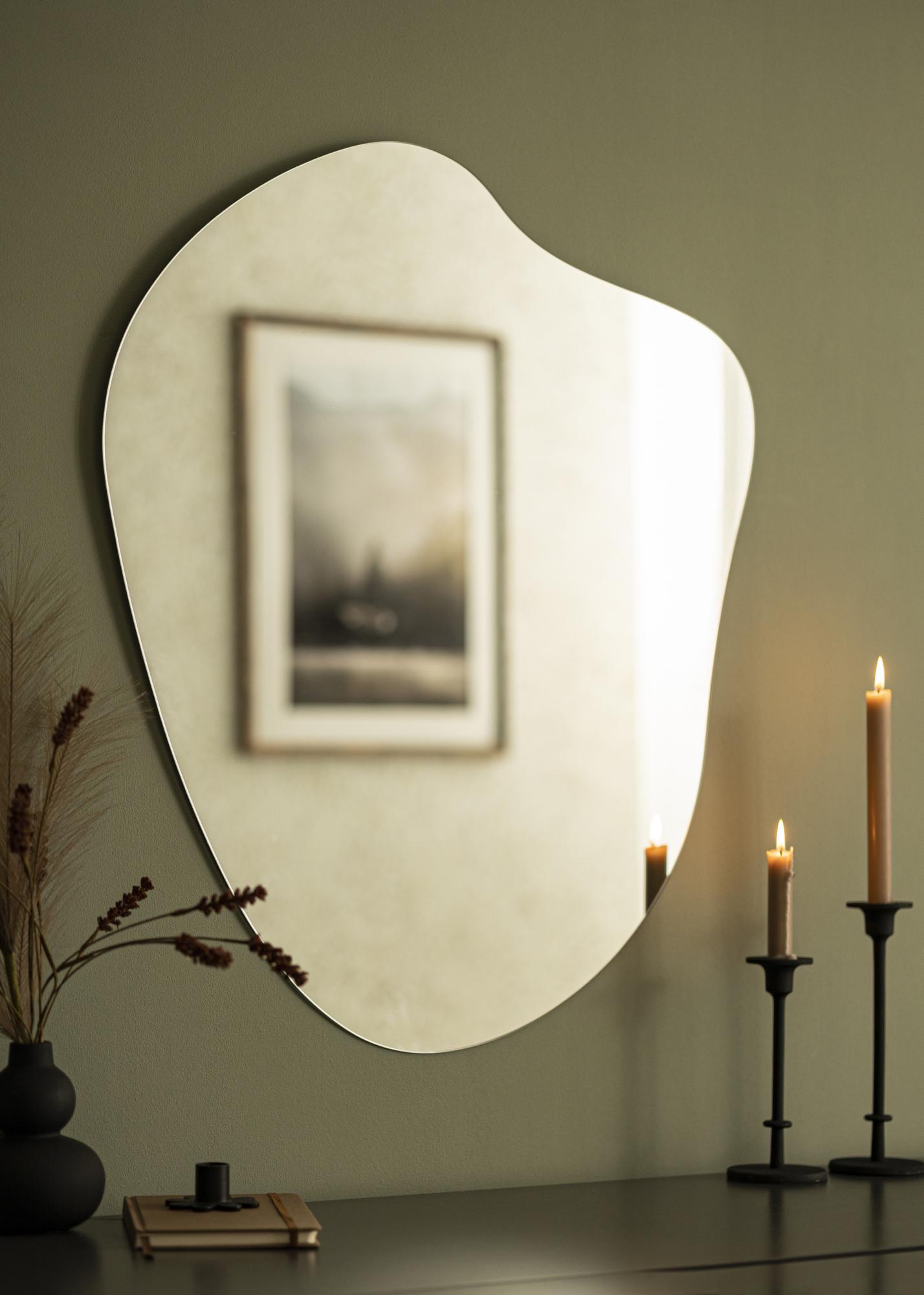Laissez ce miroir mural tendance devenir un superbe détail d'intérieur qui reflètera superbement la lumière des fenêtres et autres sources lumineuses. Sa forme unique et dépourvue de cadre donne au miroir son apparence caractéristique qui est tout aussi moderne que minimaliste.