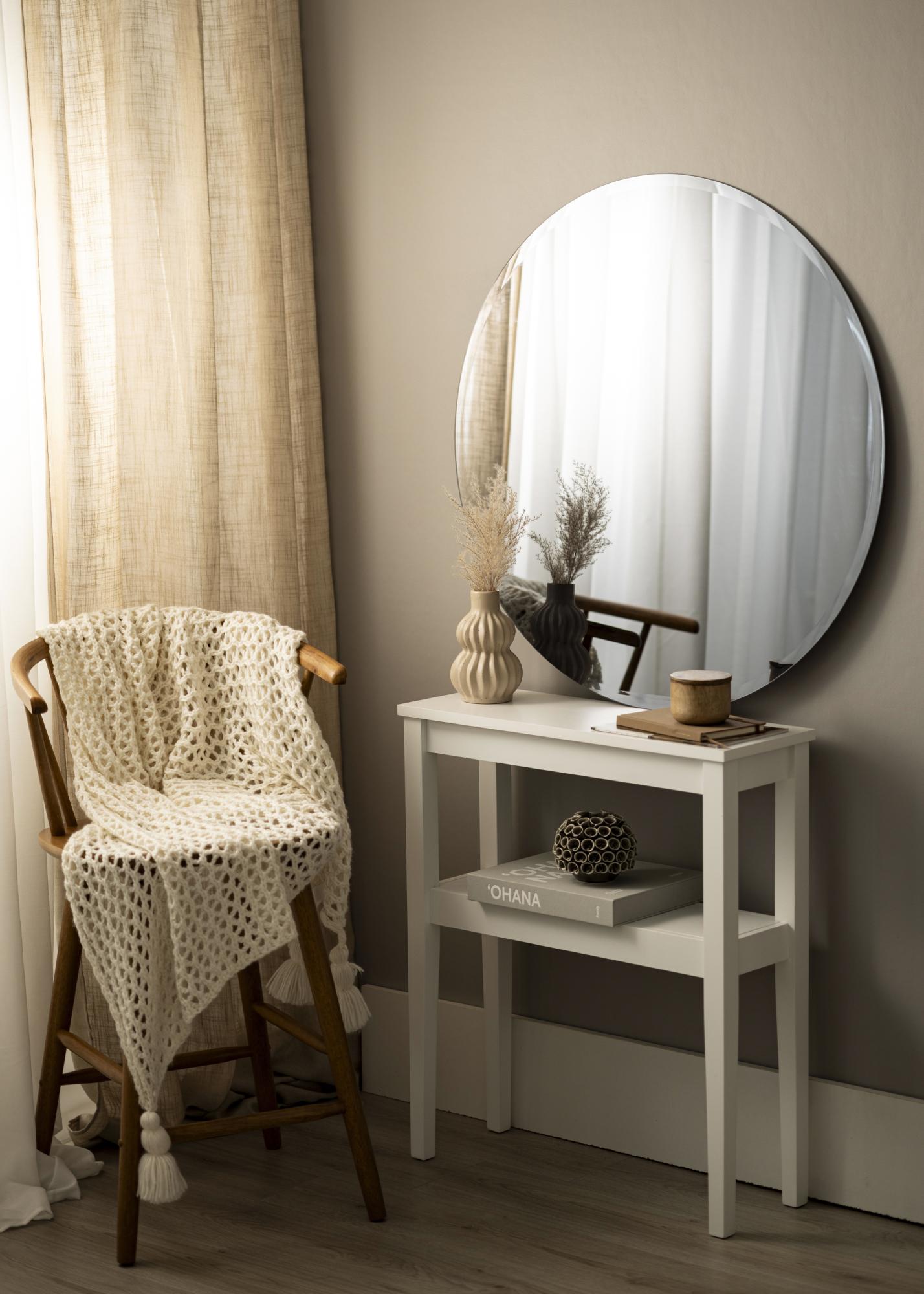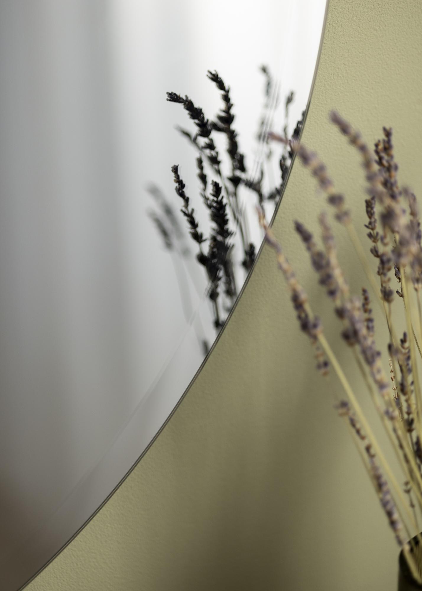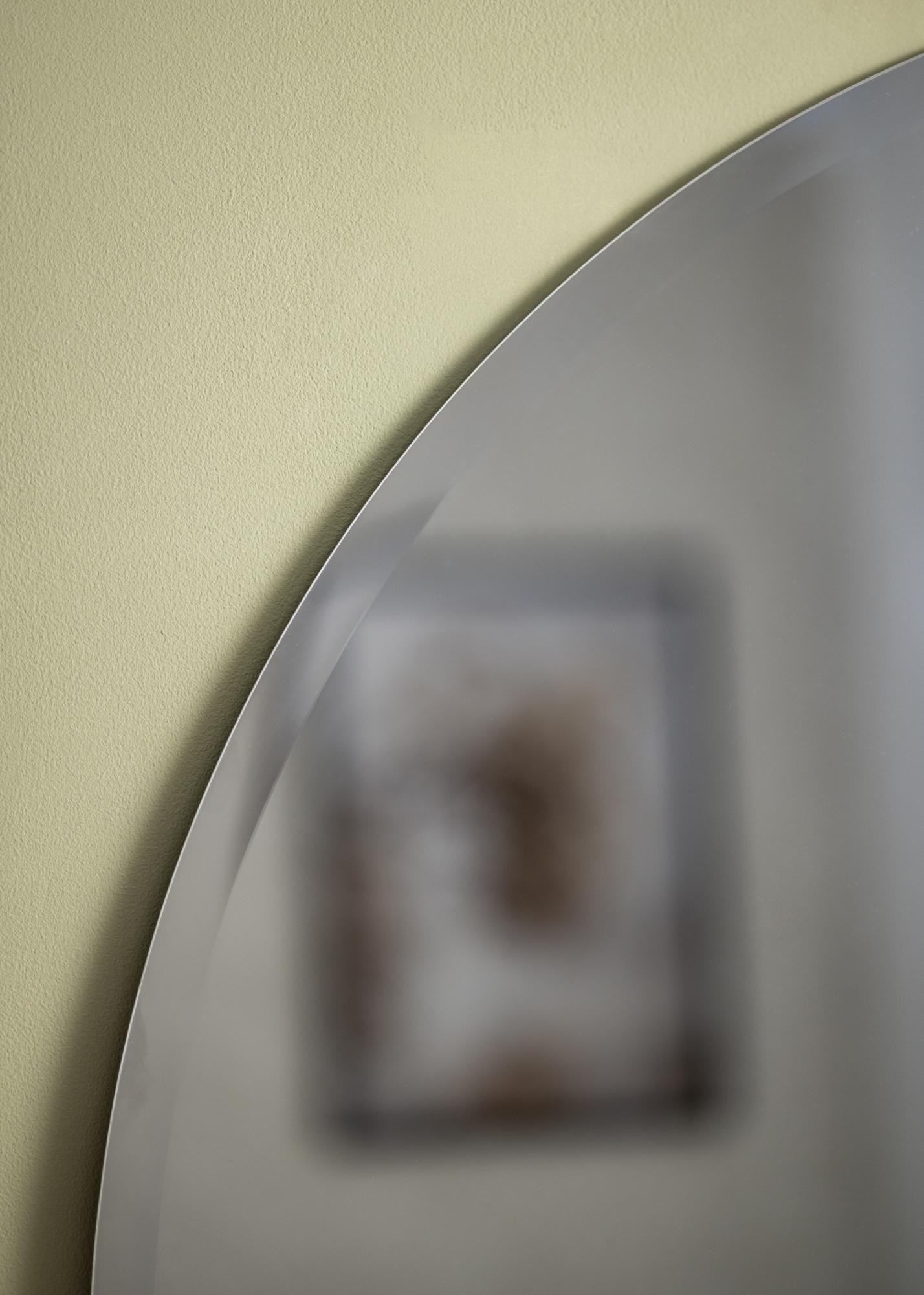 Le sentiment d'élégance que la forme et la couleur du miroir transmettent est renforcé par le fait que le miroir soit dépourvu de cadre. Au lieu de cela, les extrémités sont ornées d'un bord facetté soigné, ce qui donne au miroir ce petit plus.