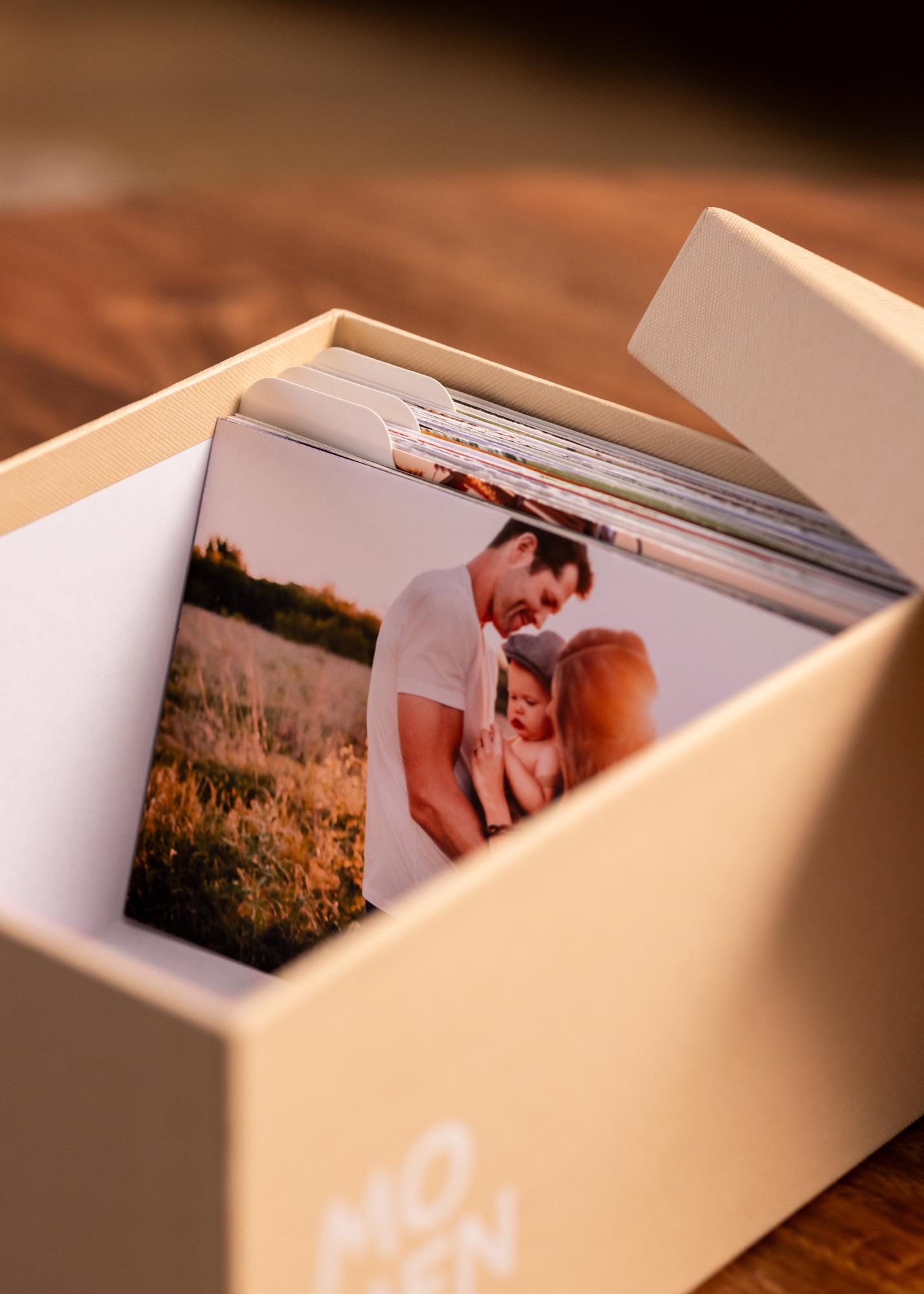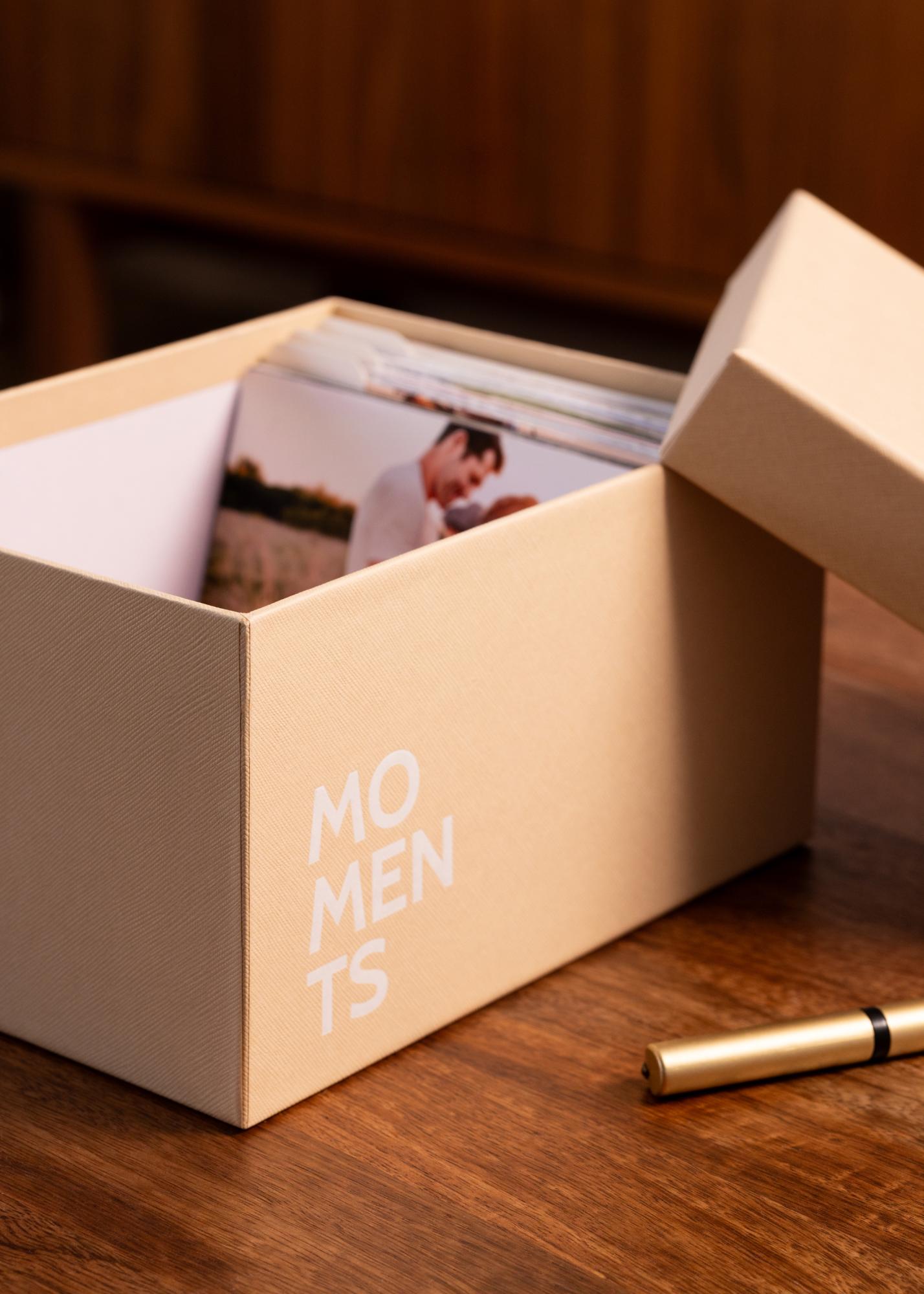 La boîte à photos KAILA Memories est une boîte photo élégante et fonctionnelle qui peut contenir jusqu'à 700 photos de la taille 10x15 cm. Le design de couleur crème offre une sensation douce et élégante qui s'harmonise avec la plupart des intérieurs. Parfaite pour organiser et préserver vos souvenirs préférés de manière belle et pratique.