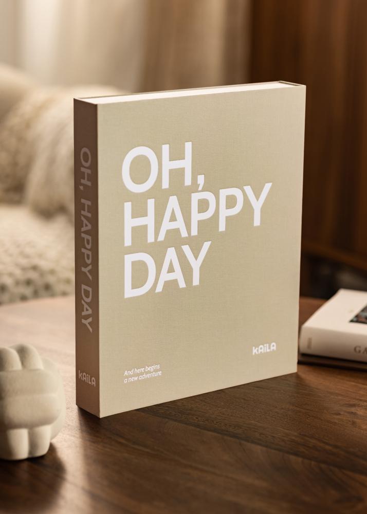 Voici un album photo idéal pour vos plus beaux souvenirs conçu par KAILA! Conservez-les avec un style dans un Coffee Table Photo Album habillé de textile, l'album devient en lui-même un beau détail d'intérieur dans votre maison. Cet album a pour titre "OH, HAPPY DAY" imprimé sur le devant dans des lettres capitales blanches et a pour sous-titre”And here begins a new adventure”.