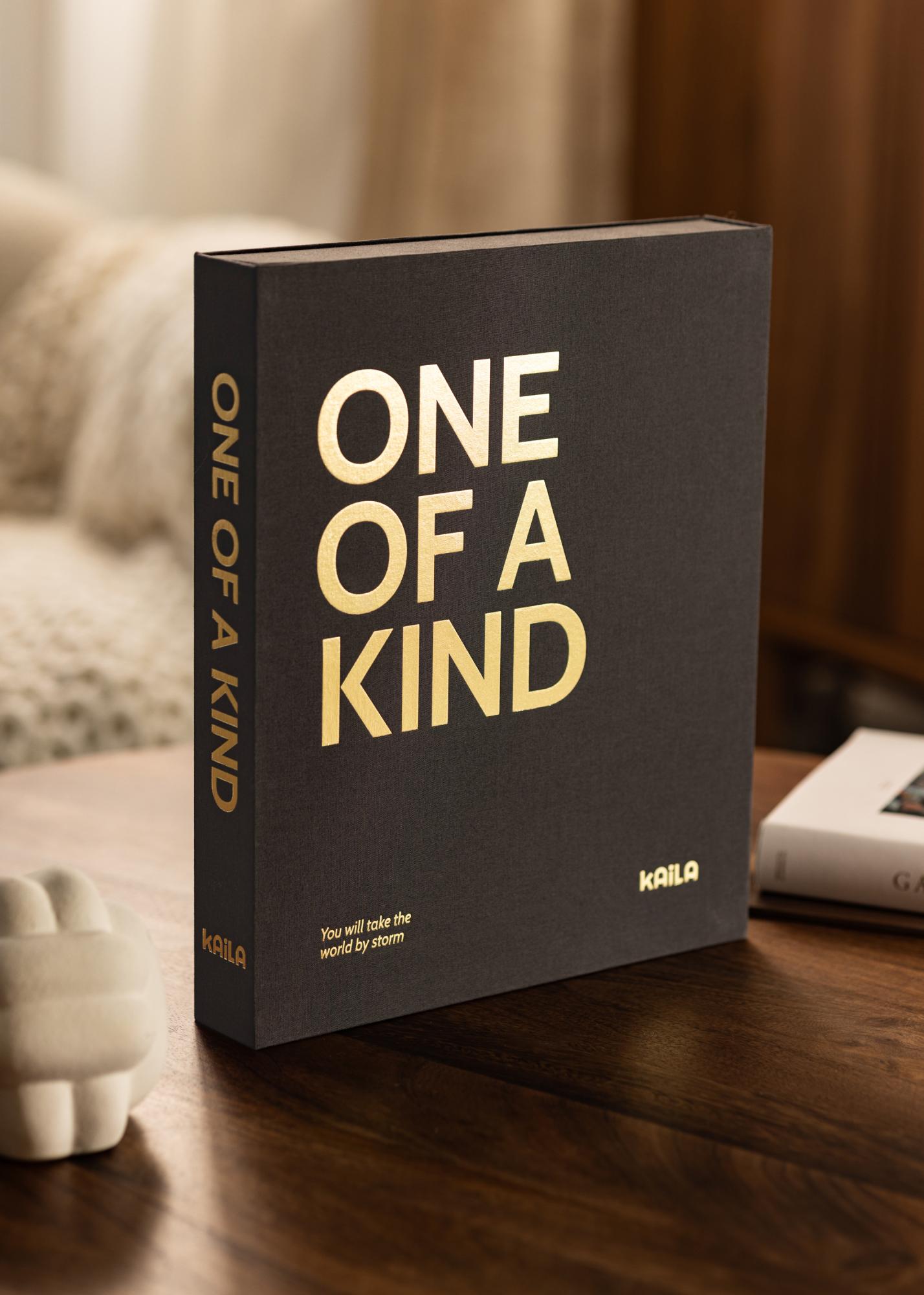 Encadrez vos images et conservez-les dans un joli Coffee Table Photo Album ! Cet album photo par KAILA est revêtu de tissu noir et est conçu sous la forme d'une boîte luxueuse, apportant ainsi un vrai sentiment d'exclusivité. Ce qui est génial, c'est que cet album photo est tout aussi beau en guise de détail d'intérieur ! Sur la couverture de l'album photo se trouve le titre ”ONE OF A KIND” imprimé en lettres blanches et le sous-titre ”You will take the world by storm”, ce qui rend cet album idéal pour les belles photos des enfants ou pour offrir en cadeau à quelqu'un de spécial, ou bien sûr pour vos propres jolis souvenirs photo.