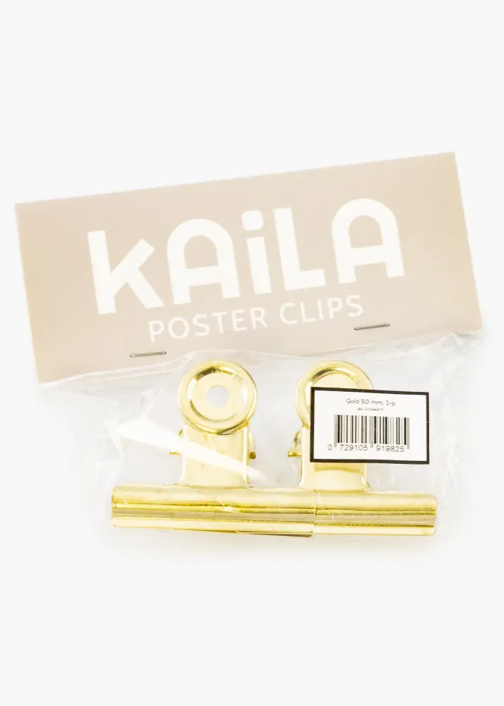 Une pince en métal dans une finition dorée élégante et brillante qui donne à vos posters et affiches une suspension tendance et minimaliste. Le design de la pince pour poster est élégant et les trous dans le haut rond permettent de la fixer facilement au mur sur un petit clou ou une vis. L'ouverture de la pince a une bonne prise qui vous permet d'accrocher le papier le plus fin, alors qu'elle est également flexible et permet la suspension de motifs d'épaisseur variable. Si vous souhaitez accrocher un grand poster, utilisez deux pinces en métal pour de meilleurs résultats.