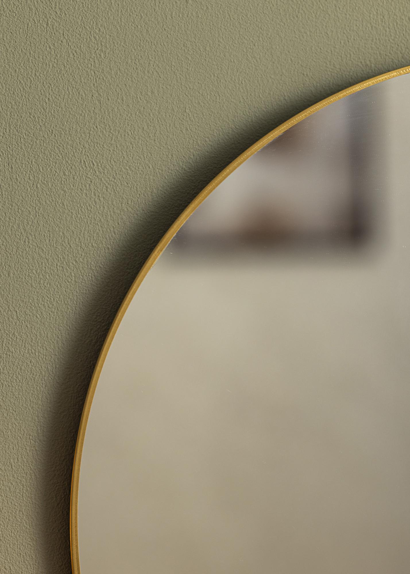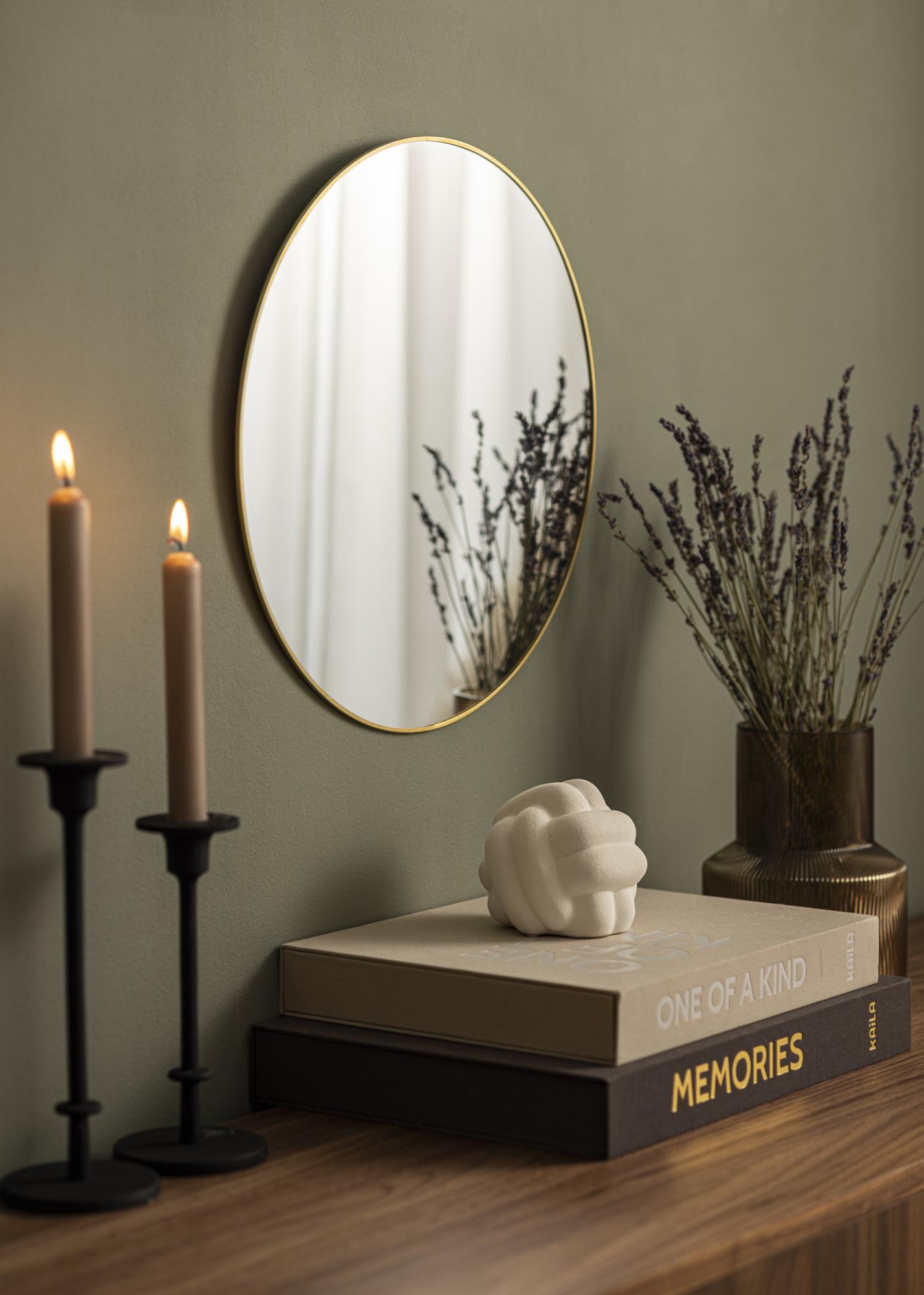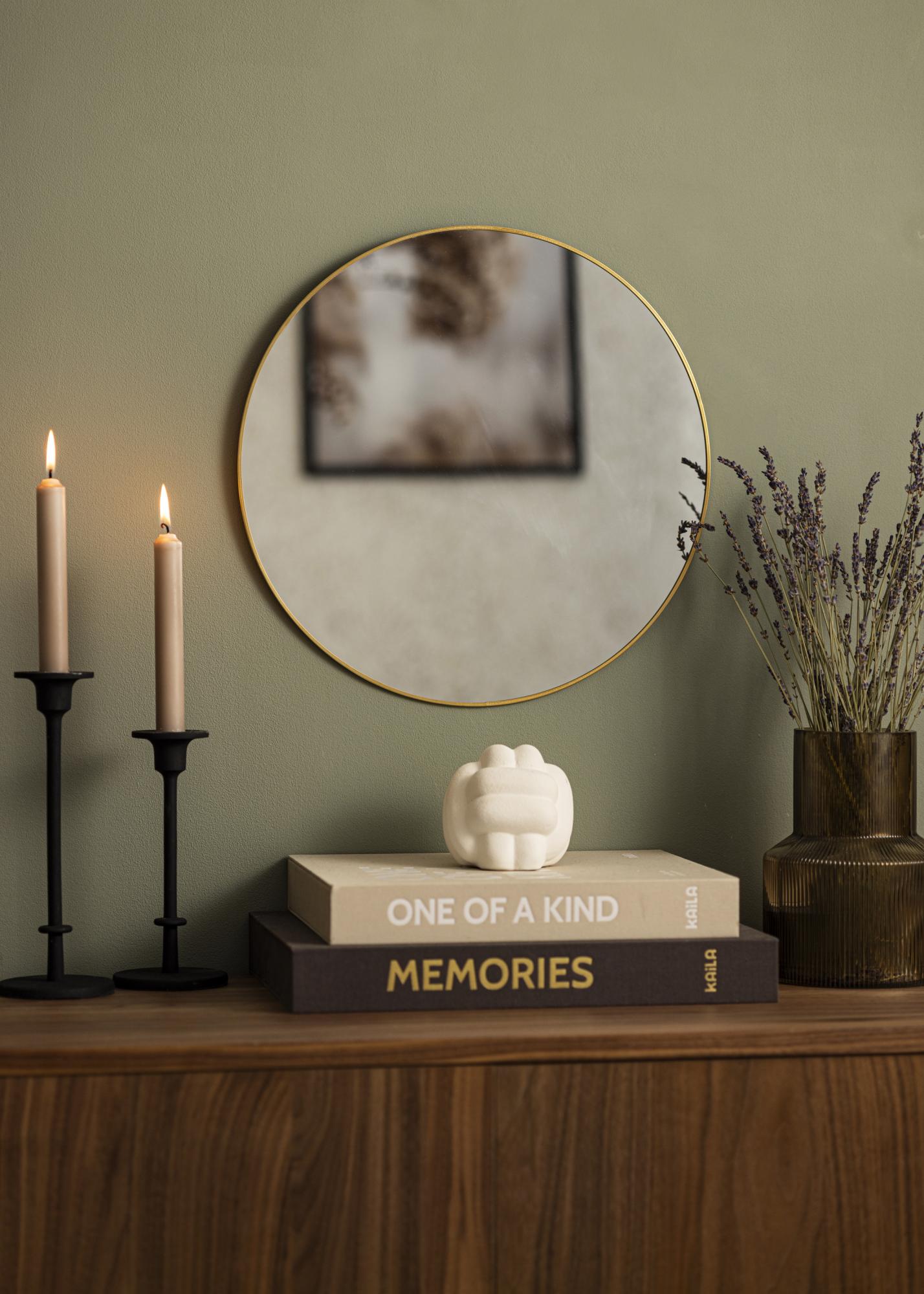 KAILA Thin Brass est un miroir mural rond avec un cadre fin dans un métal de couleur laiton. Ce miroir offre bien plus que sa seule fonctionnalité – il est également un beau détail d'intérieur. Placez-le sur le mur dans n'importe quelle pièce pour ajouter une sensation luxueuse et accueillante. Le miroir a des supports muraux. Le miroir rend aussi bien seul sur le mur qu'avec d'autres éléments muraux pour un ensemble élégant.