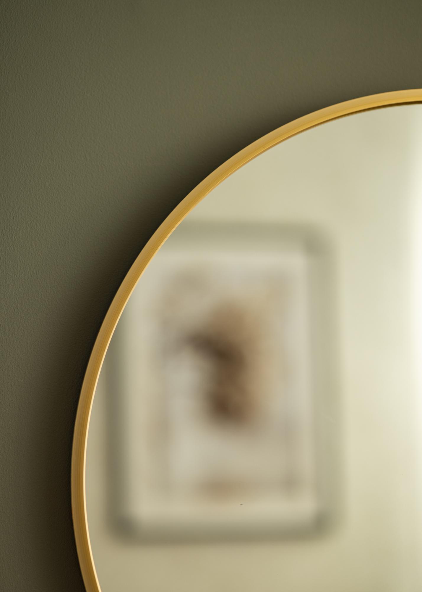 Un miroir rond au design suédois épuré avec un cadre en métal à la finition or magnifique. Le cadre a une surface brossée, ce qui donne à la belle couleur or un aspect un peu plus mat. Le cadre est également tendance et fin, mais en fonction de la taille – a une profondeur de 30-40 mm, ce qui permet de le faire ressortir un peu du mur et de créer un effet 3D impressionnant. La profondeur du cadre assure également que le miroir est solide et robuste, sans enlever à la sensation minimaliste du miroir.