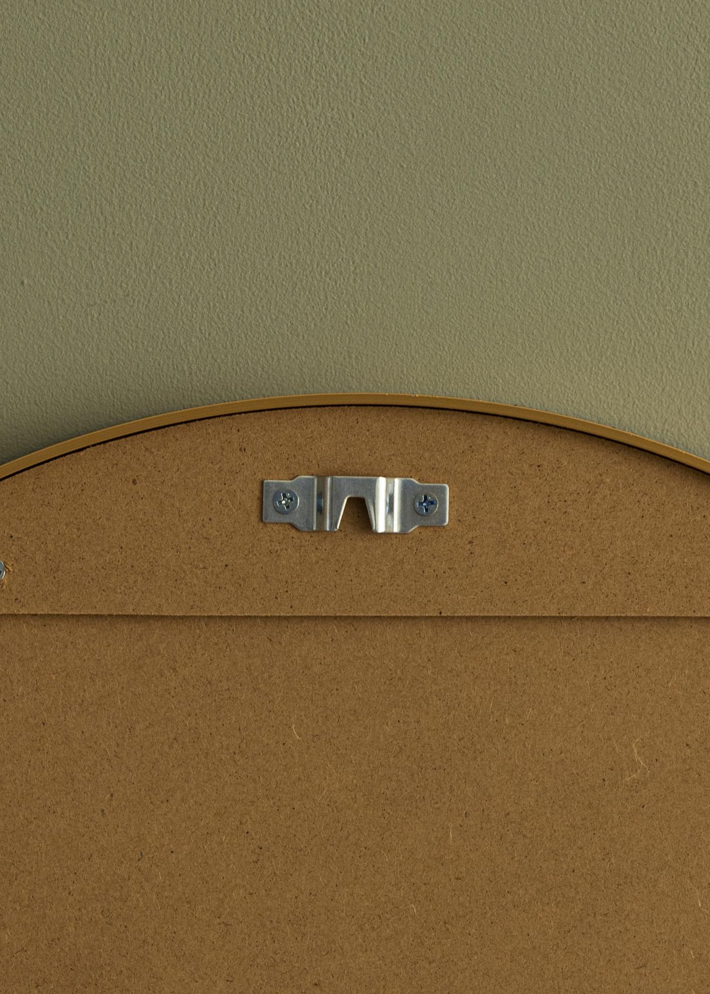 Le KAILA Round Mirror Edge Gold est disponible en plusieurs tailles, et ce miroir a un diamètre de 50 cm. Le dos du miroir est équipé d'une fixation murale pour une suspension simple et stable sur le mur, et la vis et la cheville appropriées sont incluses.