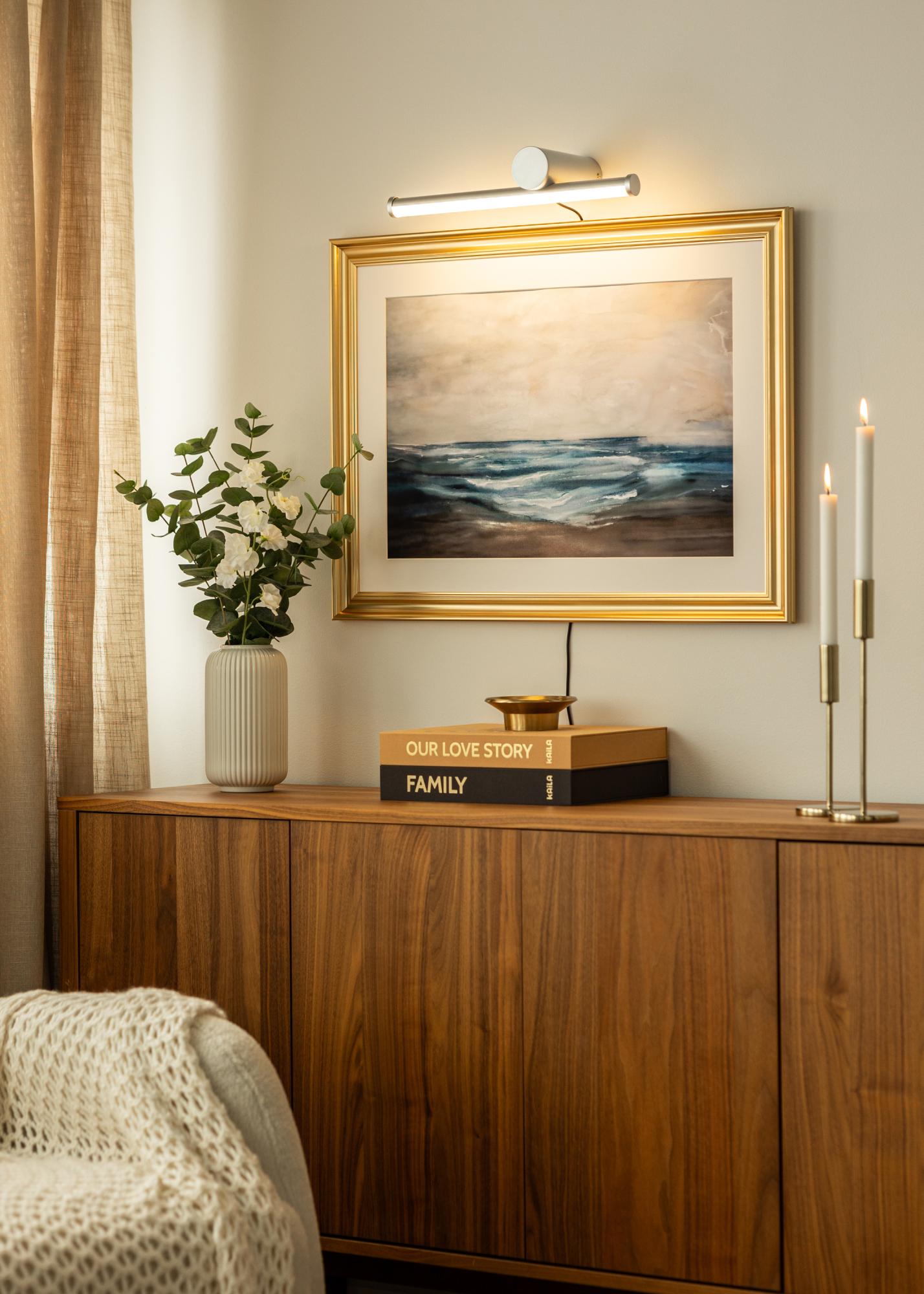 Avec une température de couleur de 3000K, cet éclairage offre une lumière chaude, mais néanmoins naturelle, qui met en valeur les détails de vos œuvres d'art sans être envahissante. La source lumineuse LED intégrée a une intensité de 520 lumens, ce qui fournit suffisamment de lumière pour couvrir des tableaux jusqu'à 80 cm de largeur tout en maintenant une consommation d'énergie faible grâce à la technologie LED moderne.