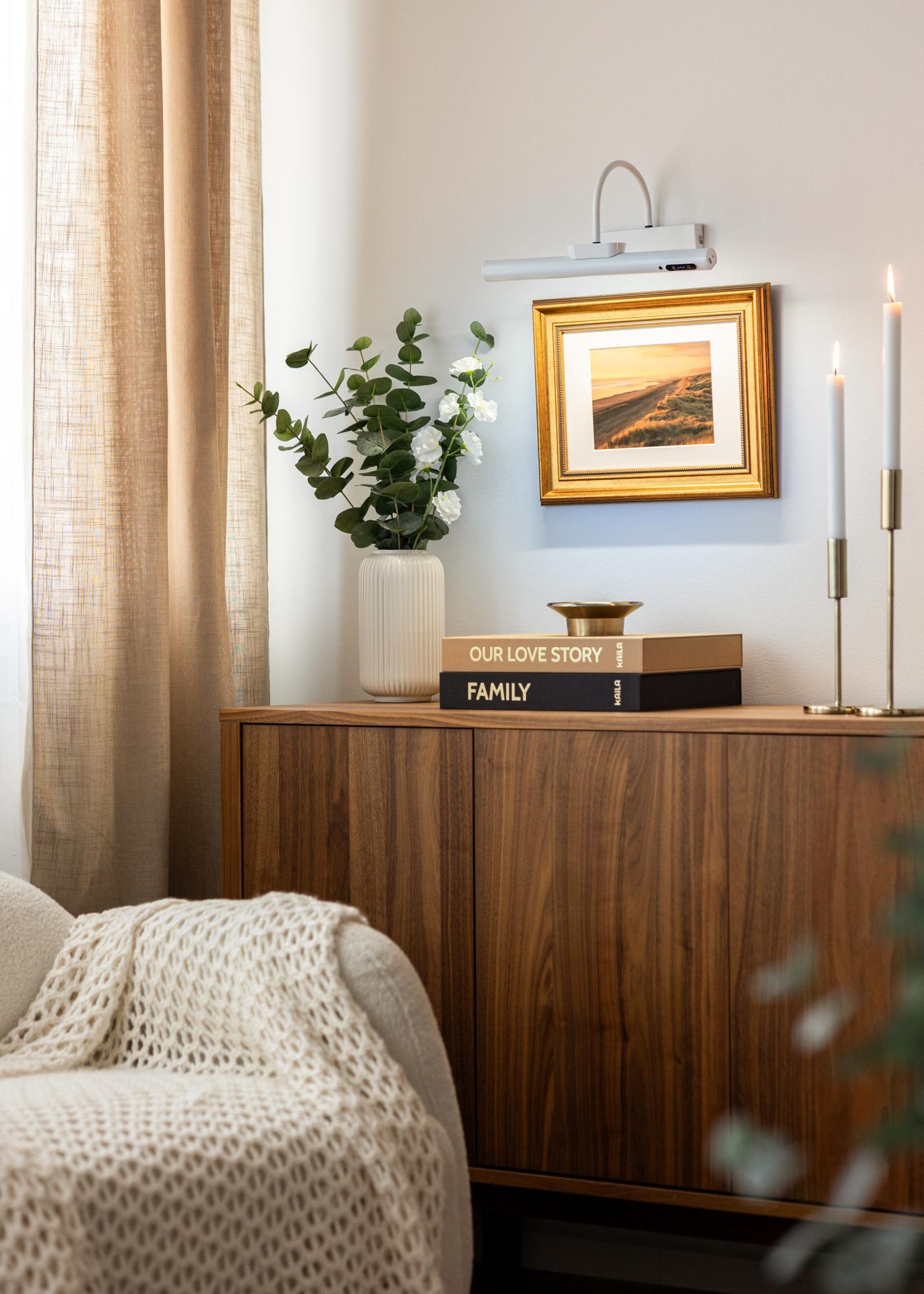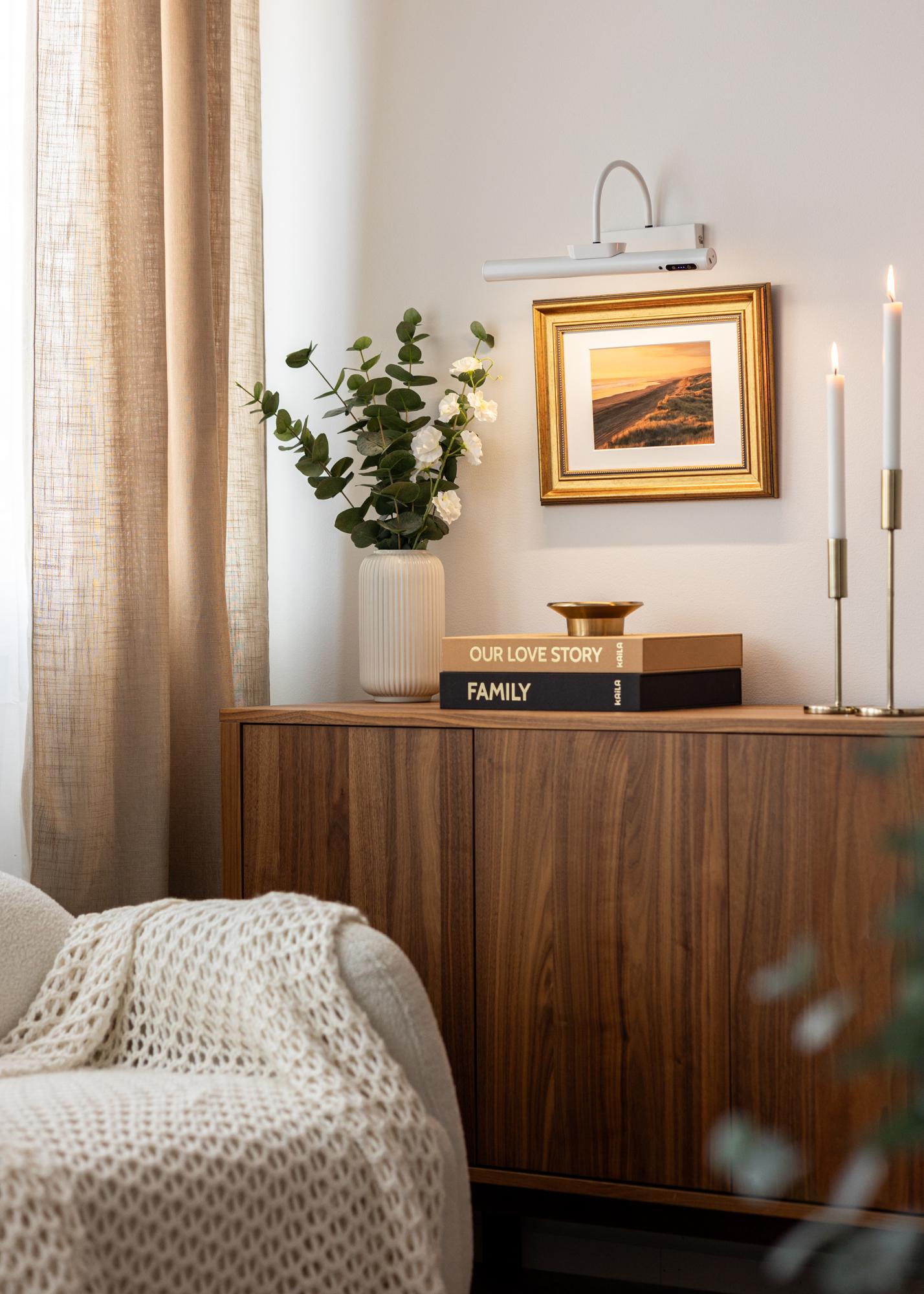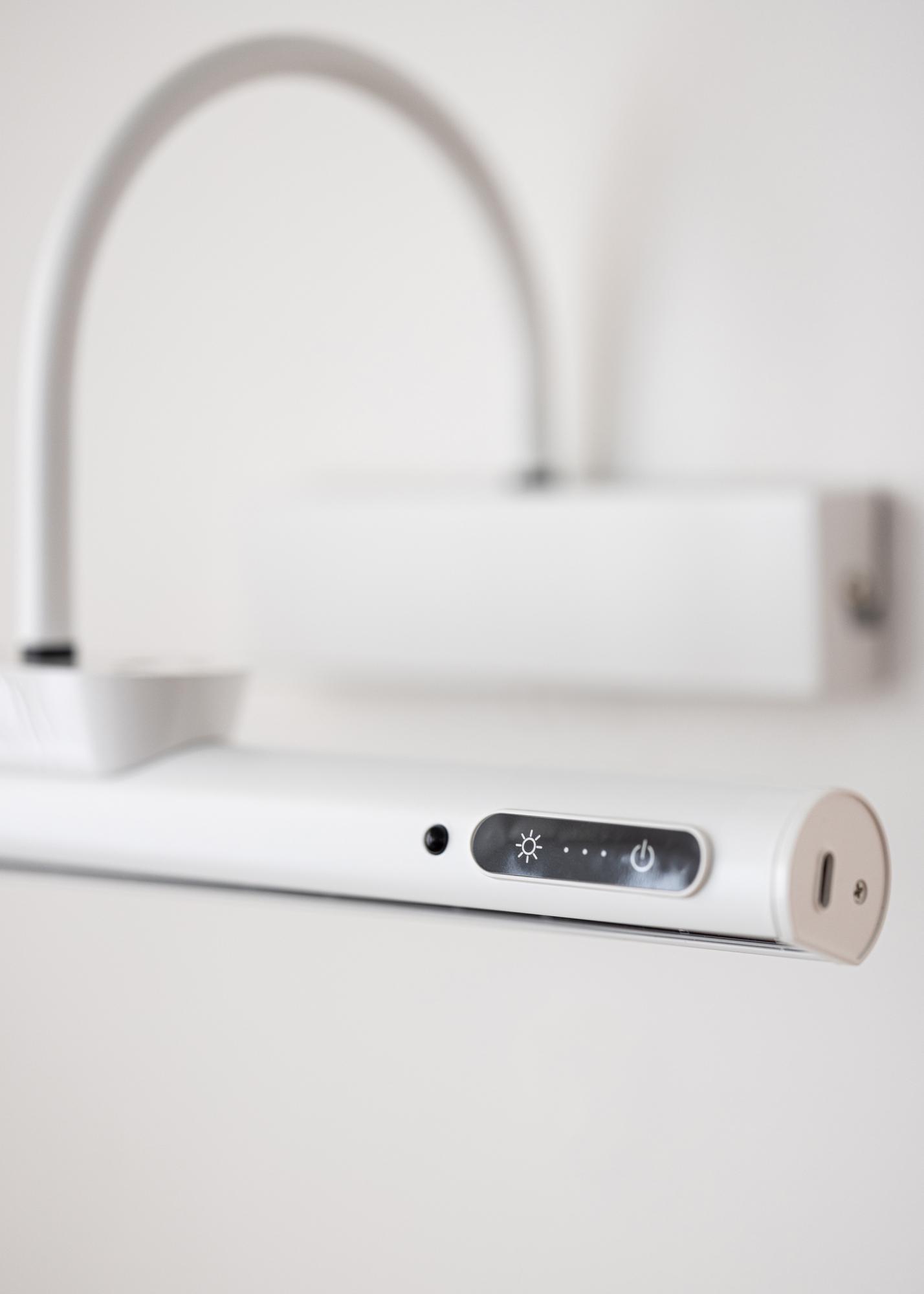 Ce luminaire d'image fonctionnant sur piles, au design blanc, est à la fois pratique et élégant. Avec la possibilité d'éviter les fils visibles, vous pouvez le placer exactement là où il est nécessaire pour mettre en valeur vos œuvres d'art de la meilleure façon possible. L'éclairage est équipé d'une source lumineuse LED qui offre une lumière agréable et qui peut être ajustée en trois températures de couleur différentes (3000K, 4000K, 6000K), en fonction de ce qui convient le mieux à votre œuvre d'art et à l'environnement.