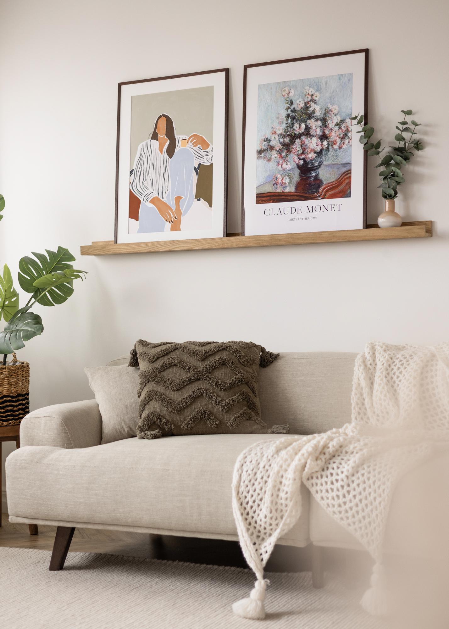 Avec une étagère à tableaux pratique, vous exposez vos tableaux de manière élégante et obtenez également d'excellentes possibilités de varier votre art mural. Cette étagère à tableaux est fabriquée en chêne massif et a un design épuré avec des lignes simples et droites. La tablette elle-même a une rainure fraisée qui soutient vos tableaux et leur permet d'avoir un angle élégant lorsqu'ils sont appuyés contre le mur. L'étagère à tableaux est disponible en plusieurs longueurs, dont cette version de 150 cm de long. L'étagère à tableaux possède également des trous pré-percés, et pour rendre cela encore un peu plus simple, des vis et chevilles appropriées sont également incluses.