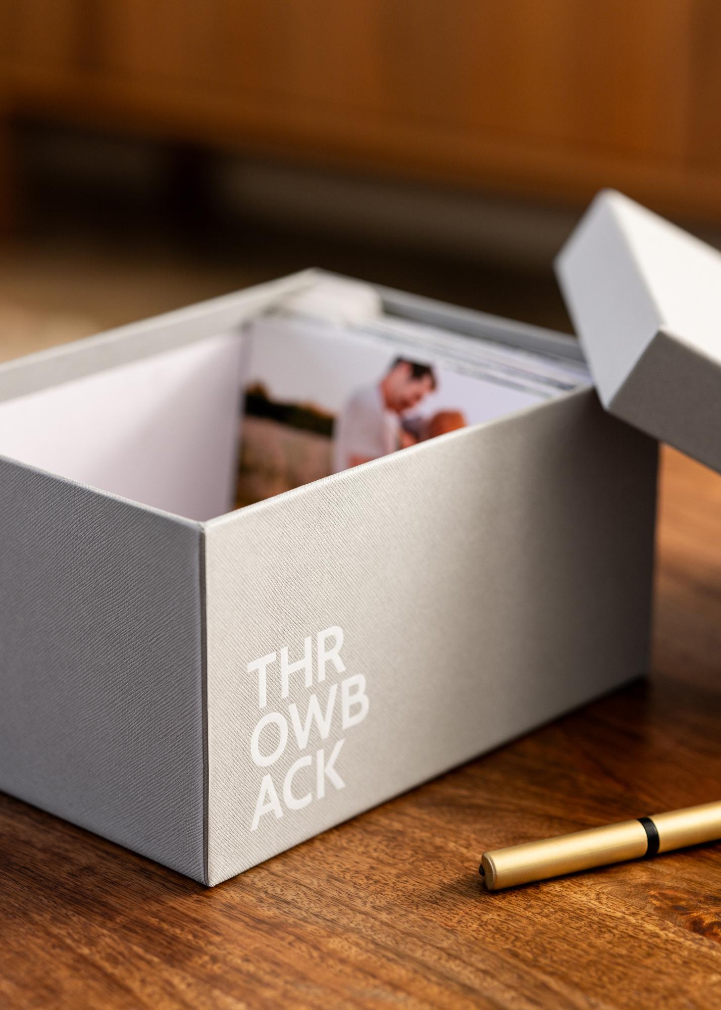 KAILA Throwback Photo Box est une boîte à photos élégante et pratique dans une teinte grise élégante. Elle peut contenir jusqu'à 700 photos de la taille 10x15 cm et est parfaite pour organiser et conserver vos souvenirs préférés. Une solution décorative et fonctionnelle pour ceux qui souhaitent avoir leurs photos réunies de manière élégante.