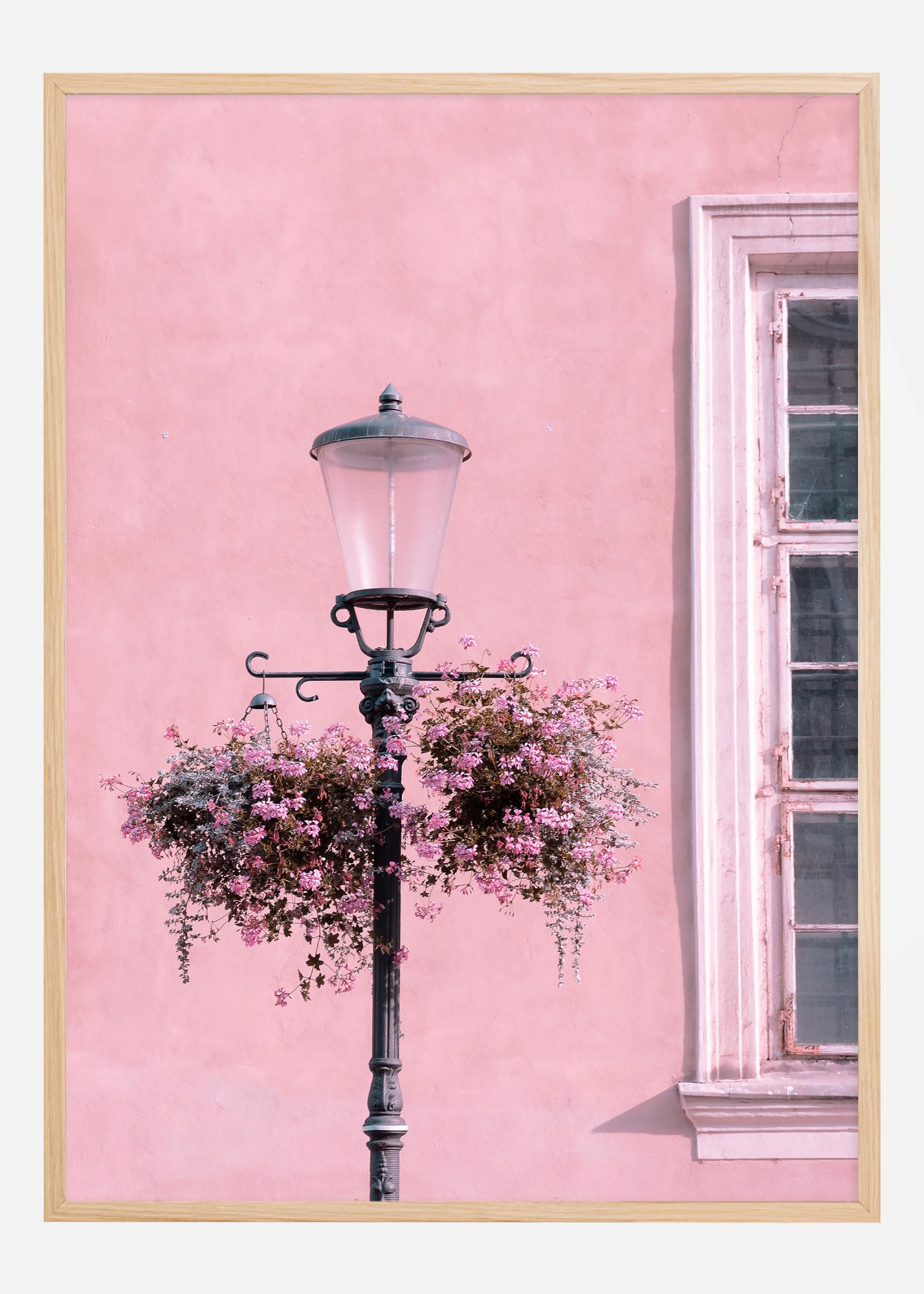 Cette affiche romantique représente un réverbère classique orné de jardinières fleuries, sur un mur de couleur rose pastel. C'est une image qui évoque des pensées de rues citadines idylliques et des beautés simples du quotidien. Parfaite pour ceux qui souhaitent apporter un morceau du centre-ville charmant dans leur propre maison. Cette impression illuminera n'importe quel endroit avec son charme doux et son ambiance vintage.
