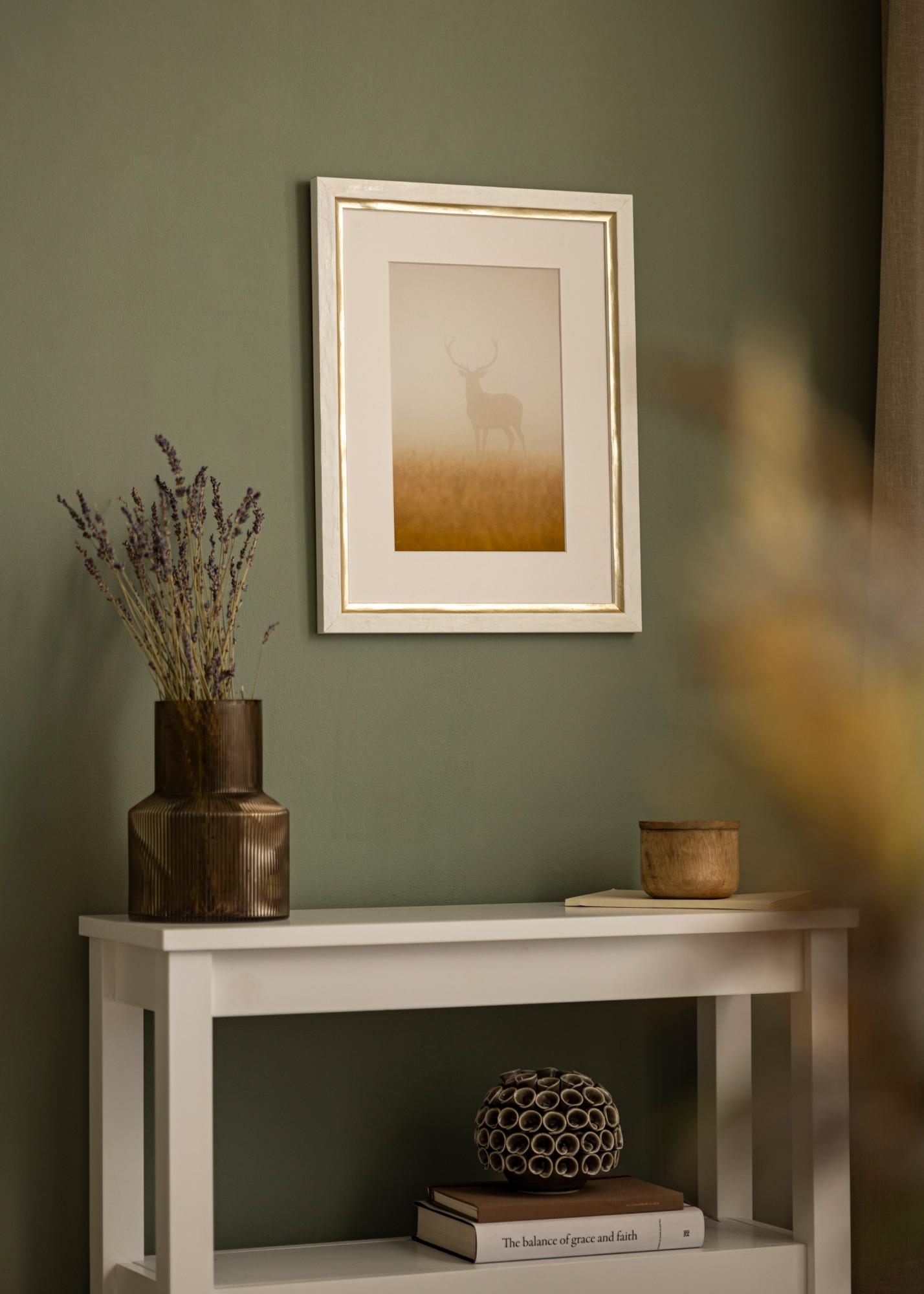"Leonie" est un cadre large de fabrication italienne, ce qui garantit une haute qualité et un beau design. Le cadre a un profil élégant en blanc avec une surface clairement structurée avec un large bord argenté le plus près du motif.