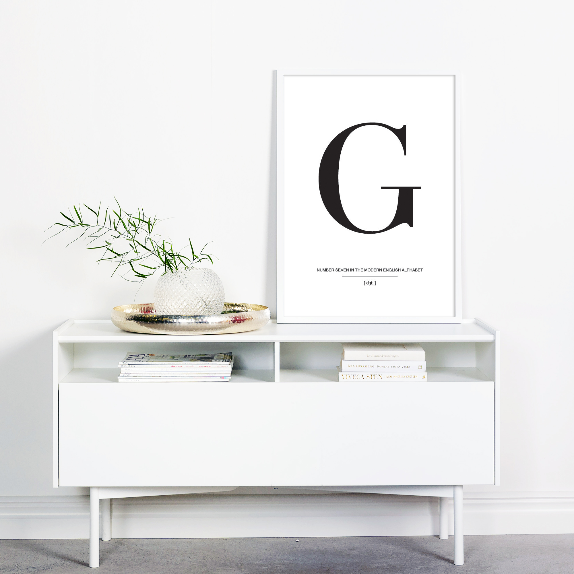 Dans la simplicité réside la beauté, et cela est vraiment prouvé par ce poster épuré avec la lettre G en noir sur un fond blanc. Le print a une typographie élégante et devrait être complété par d'autres posters de lettres de la même série pour créer un mur de cadres tendance et magnifique. Choisissez vos posters de lettres préférés et sélectionnez parmi notre large gamme de cadres de qualité, puis laissez libre cours à votre imagination sur les murs de chez vous.