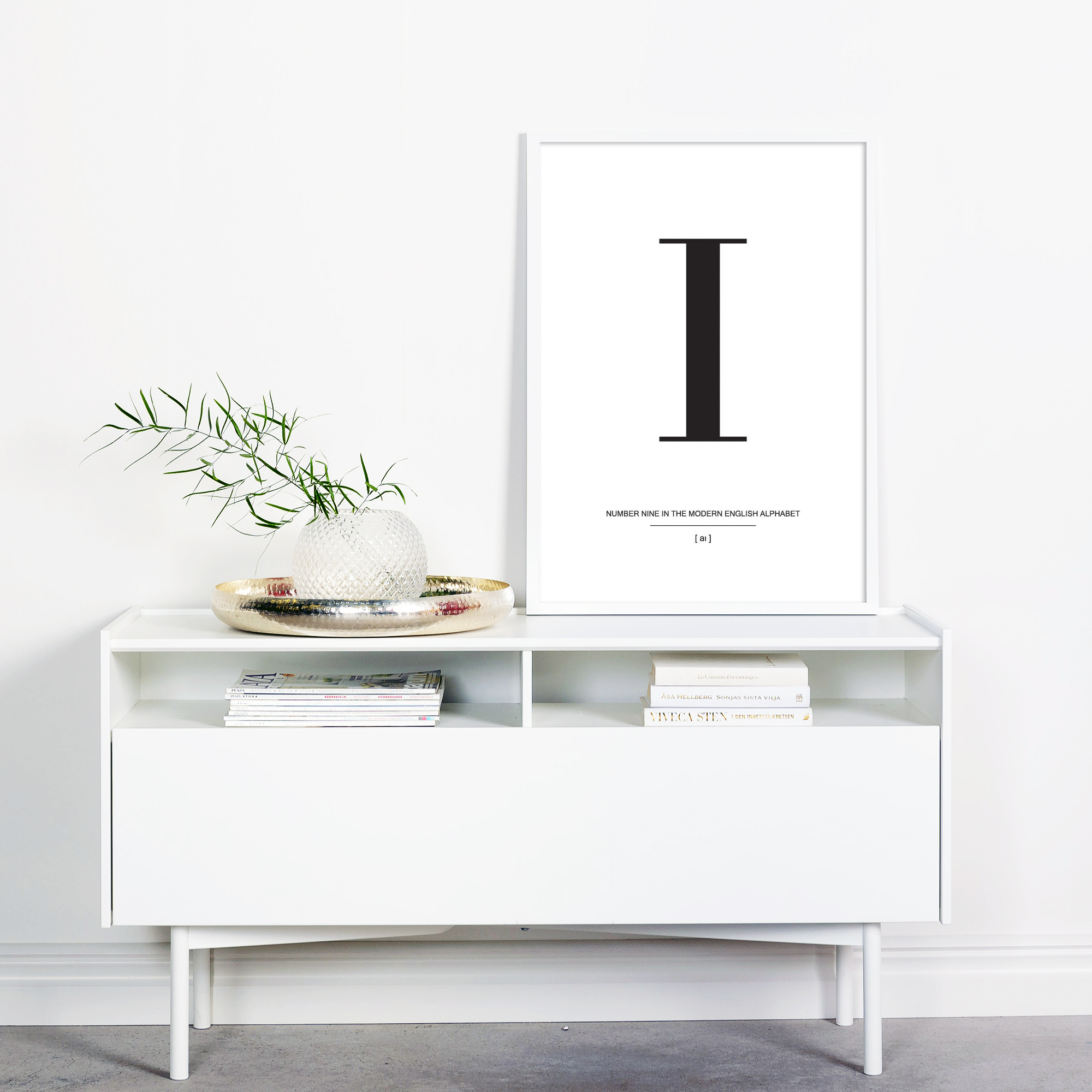 Dans la simplicité réside la beauté, et cela est vraiment prouvé par ce poster épuré avec la lettre I en noir sur un fond blanc. Le print a une typographie élégante et devrait être complété par d'autres posters de lettres de la même série pour créer un mur de cadres tendance et magnifique. Choisissez vos posters de lettres préférés et sélectionnez parmi notre large gamme de cadres de qualité, puis laissez libre cours à votre imagination sur les murs de chez vous.