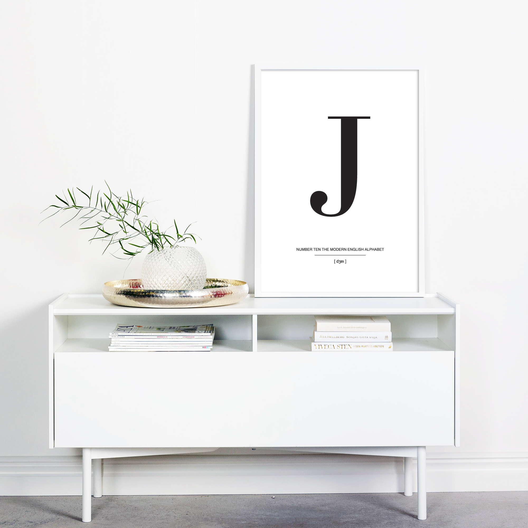 Dans la simplicité réside la beauté, et cela est vraiment prouvé par ce poster épuré avec la lettre J en noir sur un fond blanc. Le print a une typographie élégante et devrait être complété par d'autres posters de lettres de la même série pour créer un mur de cadres tendance et magnifique. Choisissez vos posters de lettres préférés et sélectionnez parmi notre large gamme de cadres de qualité, puis laissez libre cours à votre imagination sur les murs de votre maison.