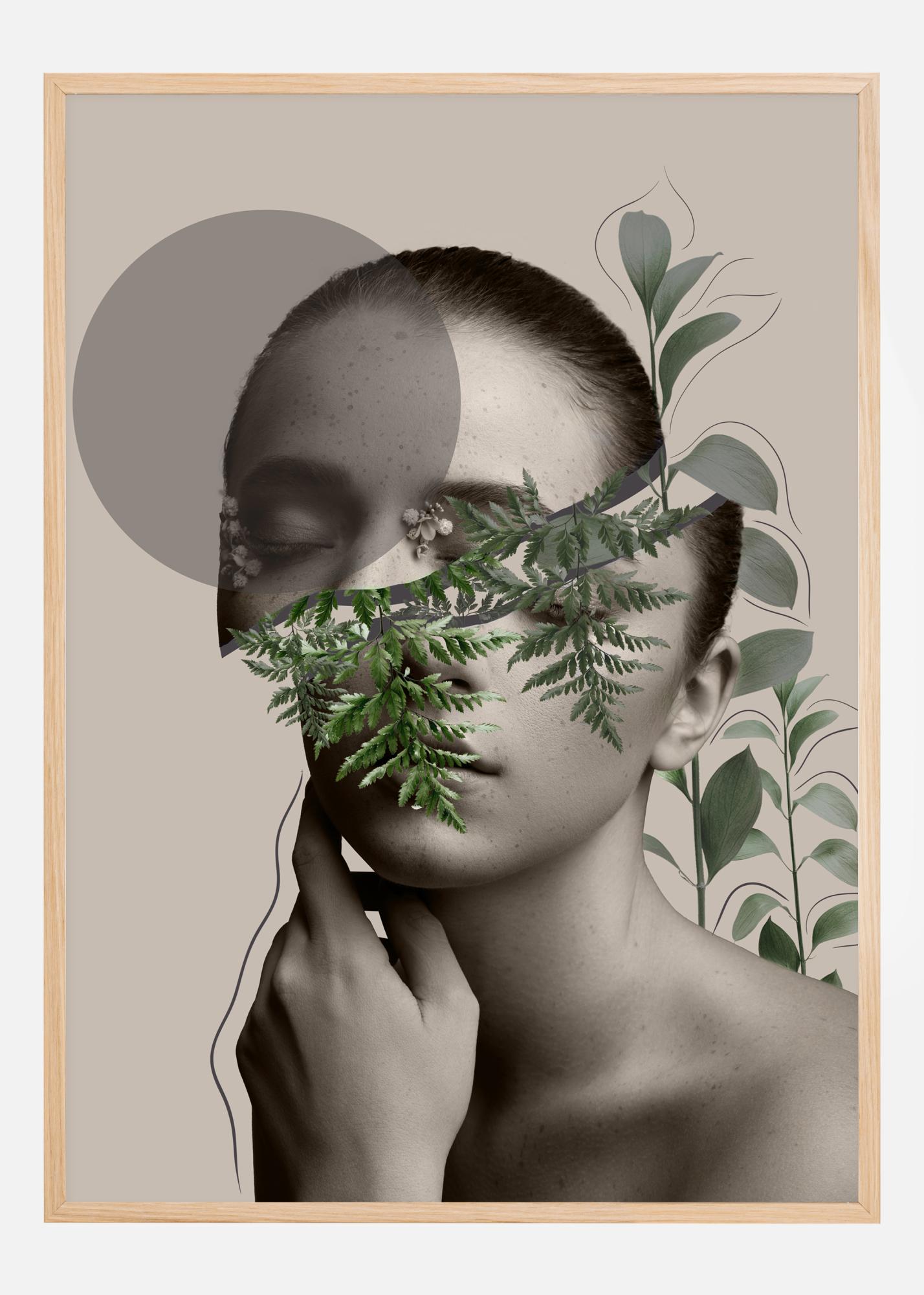 Ce magnifique portrait est inspiré de l'art du découpage. Différentes images sont juxtaposées pour créer une œuvre d'art moderne et élégante. La jeune fille sur le tableau est entourée de magnifiques plantes qui créent un sentiment de paix et de tranquillité. Une affiche idéale pour une chambre à coucher avant-gardiste ou un salon minimaliste.