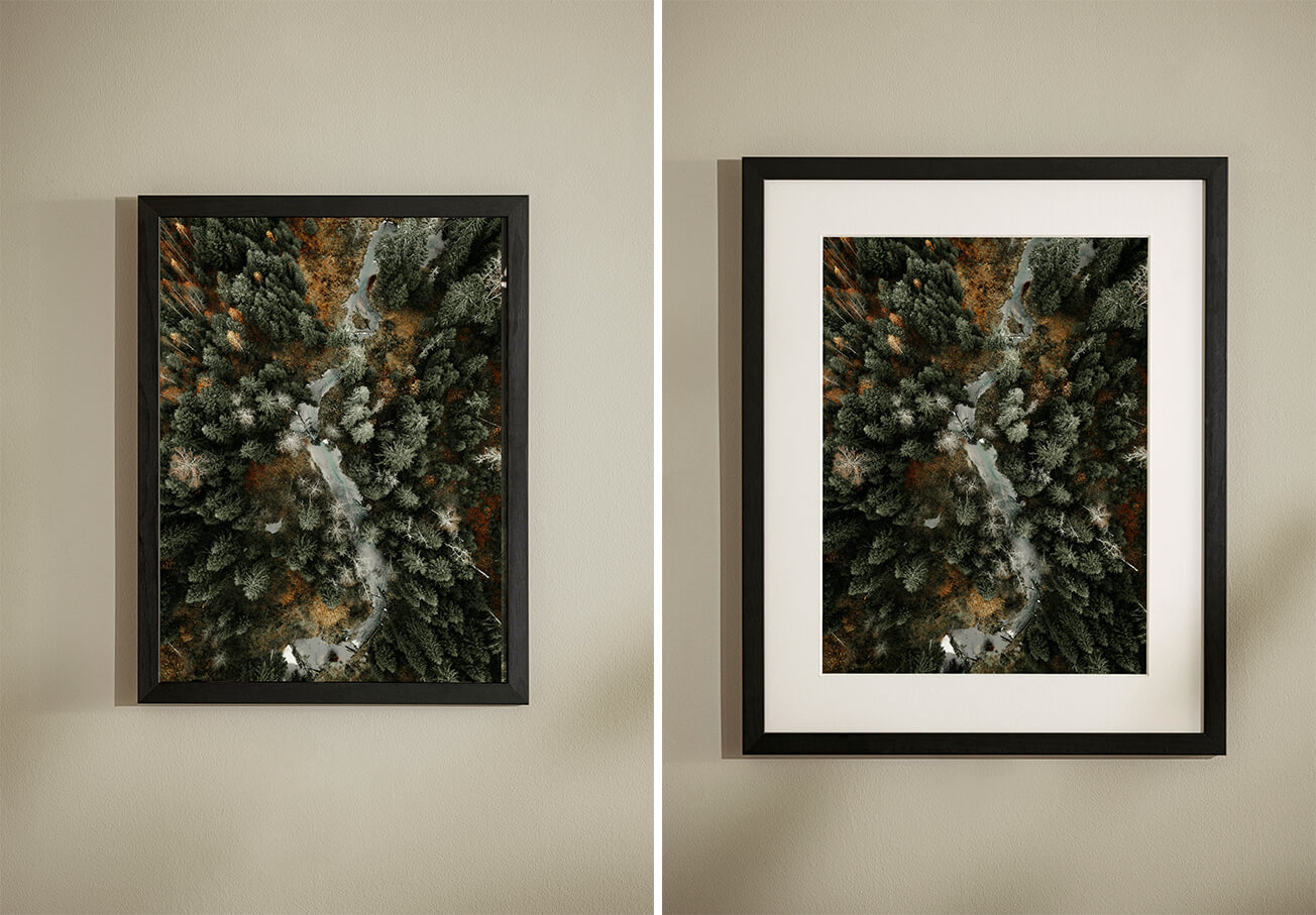 PROTÉGER VOTRE IMAGE : Un passe-partout ajoute une couche supplémentaire entre votre image et le verre, ce qui aide à protéger l'image de la poussière, de l'humidité et des autres dommages.