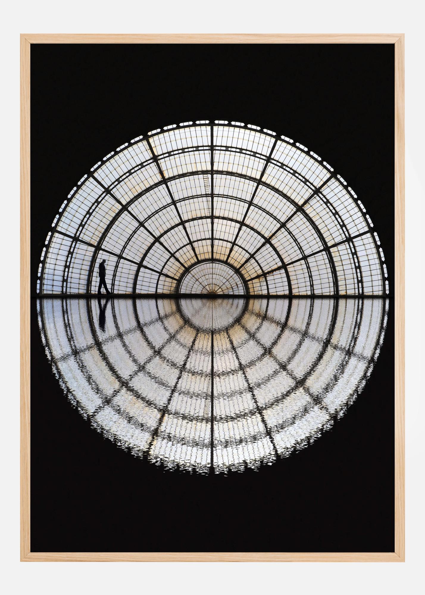 Cette affiche artistique intitulée "Midnight Walker" capture une figure solitaire marchant sous une impressionnante coupole de filet lumineux, créant une sensation à la fois de grandeur et d'isolement. Le contraste visuel entre la nuit sombre et le filet lumineux donne vie au motif, et le spectateur peut ressentir le calme silencieux de la promenade solitaire.