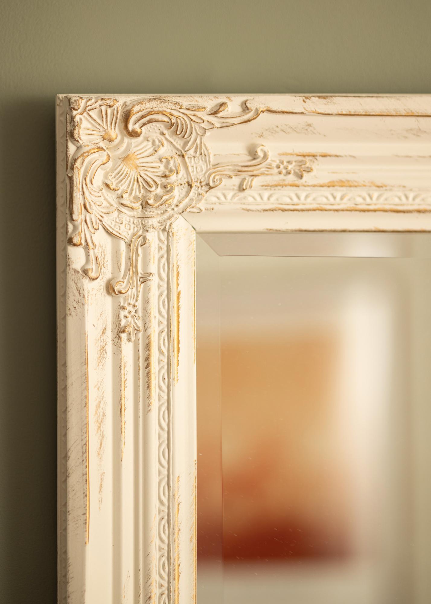 Le miroir Antique Blanc est un miroir mural au format et à la forme traditionnels. Il est doté d'un cadre en bois à la décoration classique qui a été coulée dans du plâtre puis appliquée sur le cadre. Ce cadre fait du miroir un bel ornement qui attirera les regards.