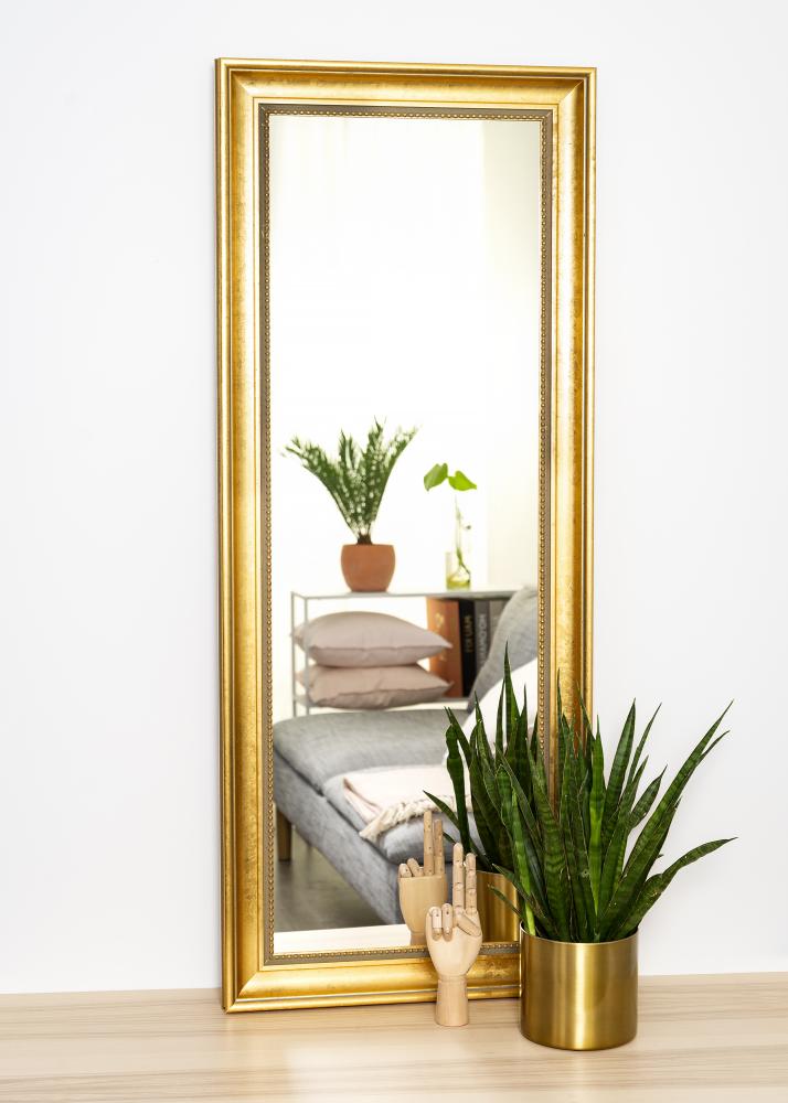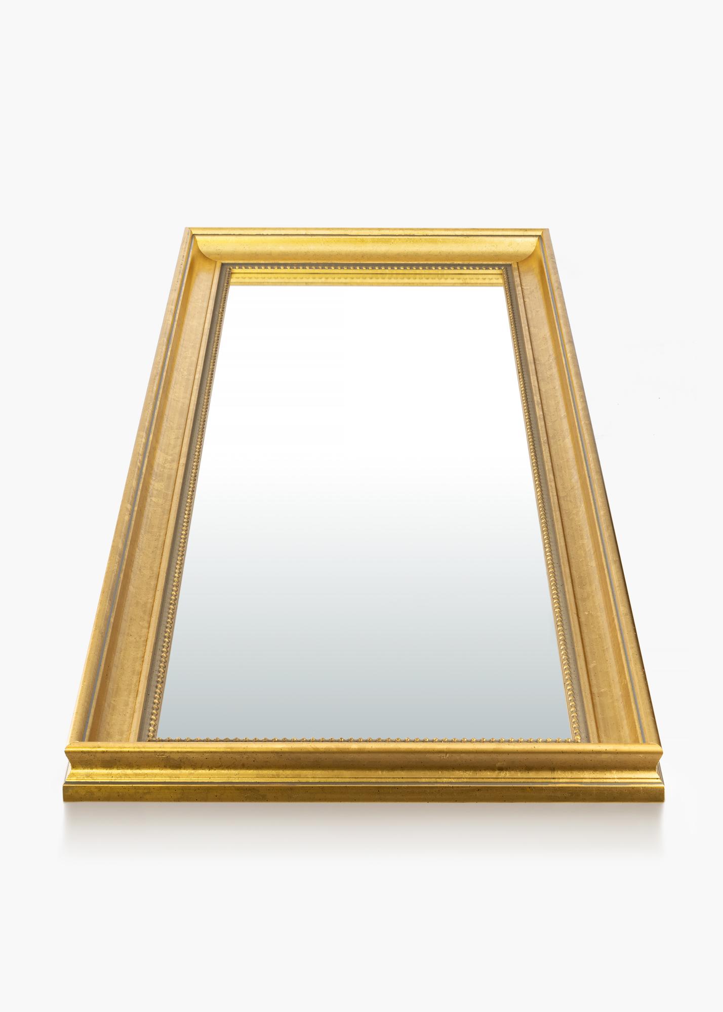 Faites l'acquisition d'un beau miroir pour apporter une touche de luxe à votre entrée, votre salon ou votre salle de bain. Ce miroir élégant est disponible en plusieurs tailles différentes, ce qui vous permettra d'en trouver facilement un qui répondra à vos besoins. L'encadrement du miroir est de design classique avec un cadre large et un motif de perles discret le long du verre. Le bois est issu de la sylviculture durable et est peint dans une belle teinte dorée.