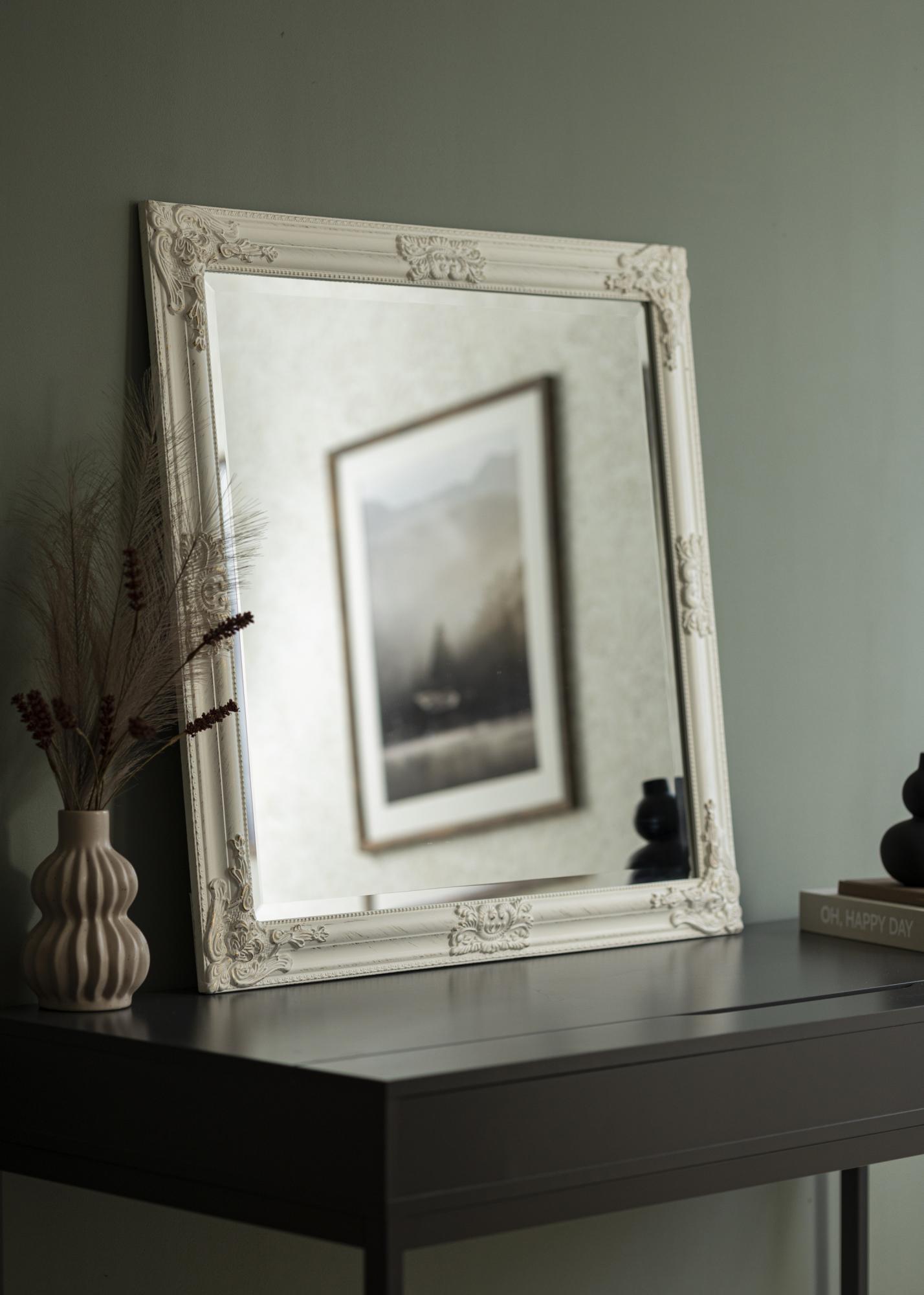 Découvrez le miroir carré élégant mesurant 80x80 cm, une taille parfaite pour être à la fois fonctionnel et décoratif dans votre maison. Ce miroir a une forme carrée qui donne une sensation symétrique et équilibrée, en en faisant un élément attrayant dans n'importe quelle pièce. Le cadre blanc est richement orné de détails d'inspiration classique, créant une élégance et un charme intemporels.