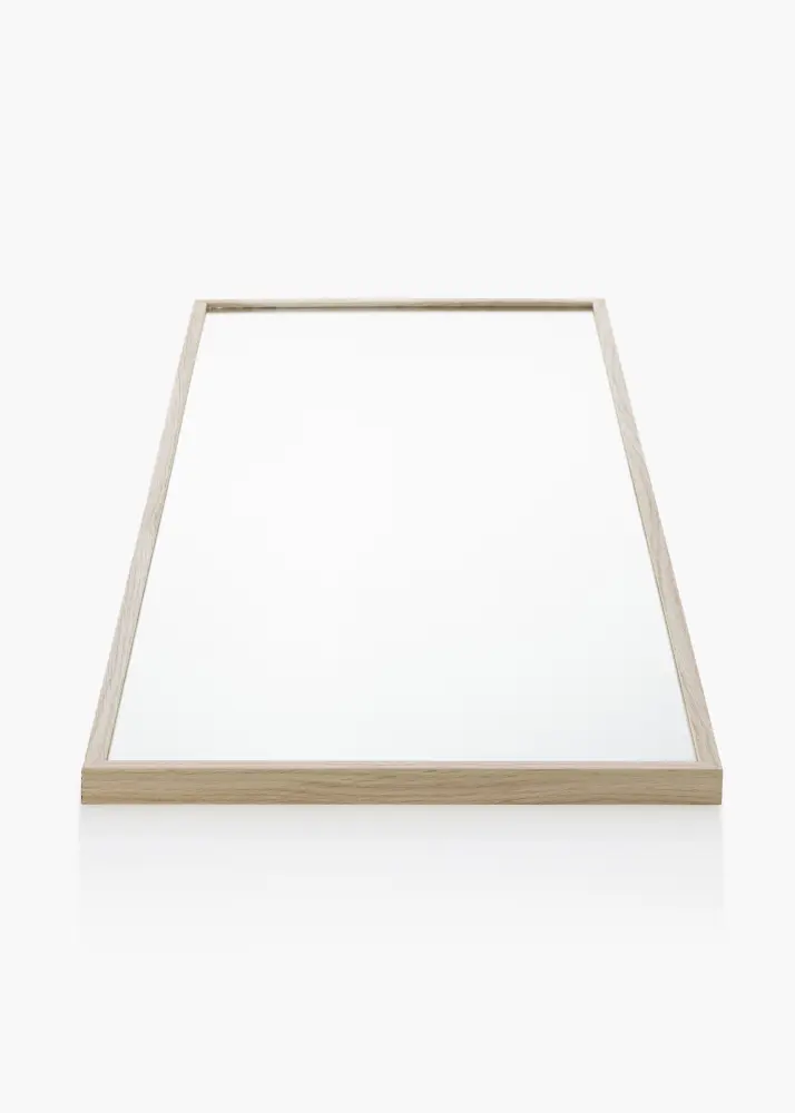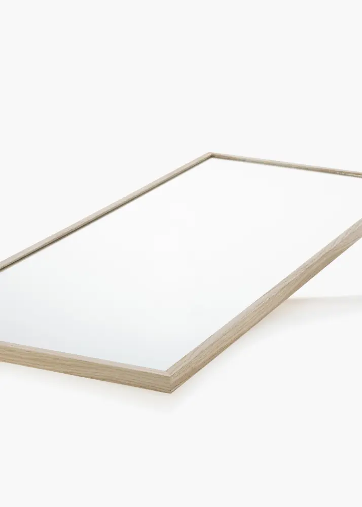 Voici un miroir mural doté d'un fin encadrement en bois qui conviendra aussi bien dans les intérieurs modernes que les intérieurs bohèmes. Le miroir est un exemple de design scandinave sous son meilleur jour, avec un verre miroir incolore et un cadre en bois clair avec un profil droit, le tout apporte une impression fraîche et lumineuse.