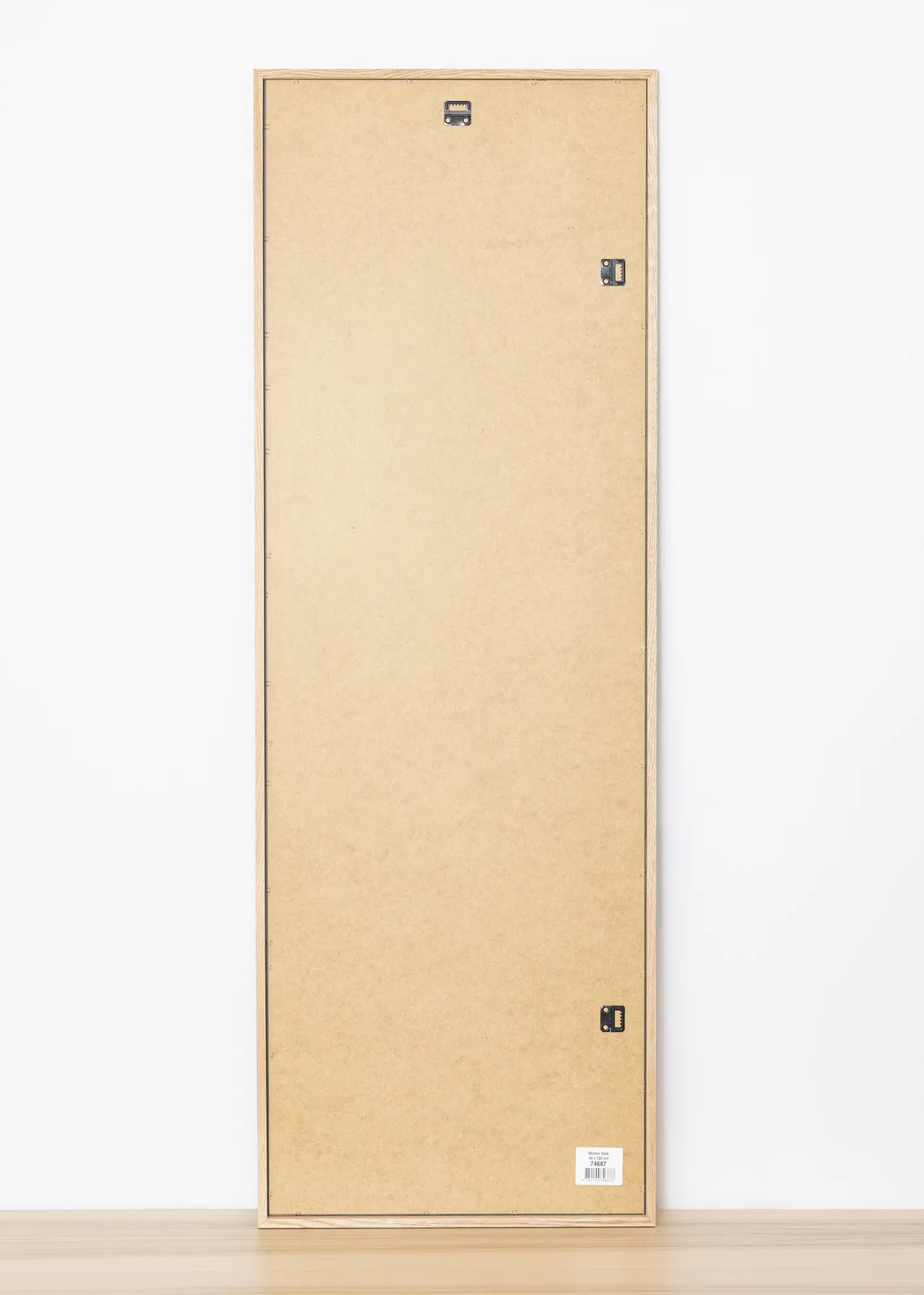 Ce miroir ne fait que 1,4 cm de profondeur, ce qui apporte un effet de grande netteté. À l'arrière, il y a des supports muraux pour l'accrocher facilement. Les modèles rectangulaires peuvent être accrochés à la verticale comme à l'horizontale.