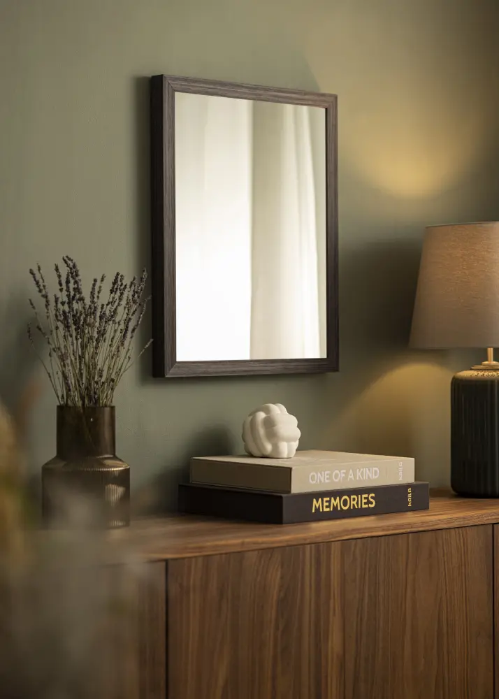 Miroir Cotswold Gris est un miroir sur mesure fabriqué par nous pour s'adapter précisément à vos besoins. Avec son cadre de 28 mm de large et une profondeur de 33 mm, ce miroir offre un parfait équilibre entre fonctionnalité et esthétique. Le cadre est en pin avec une finition bois foncé et une structure grainée apparente, ce qui renforce son apparence naturelle et donne à la pièce une sensation chaleureuse et accueillante.