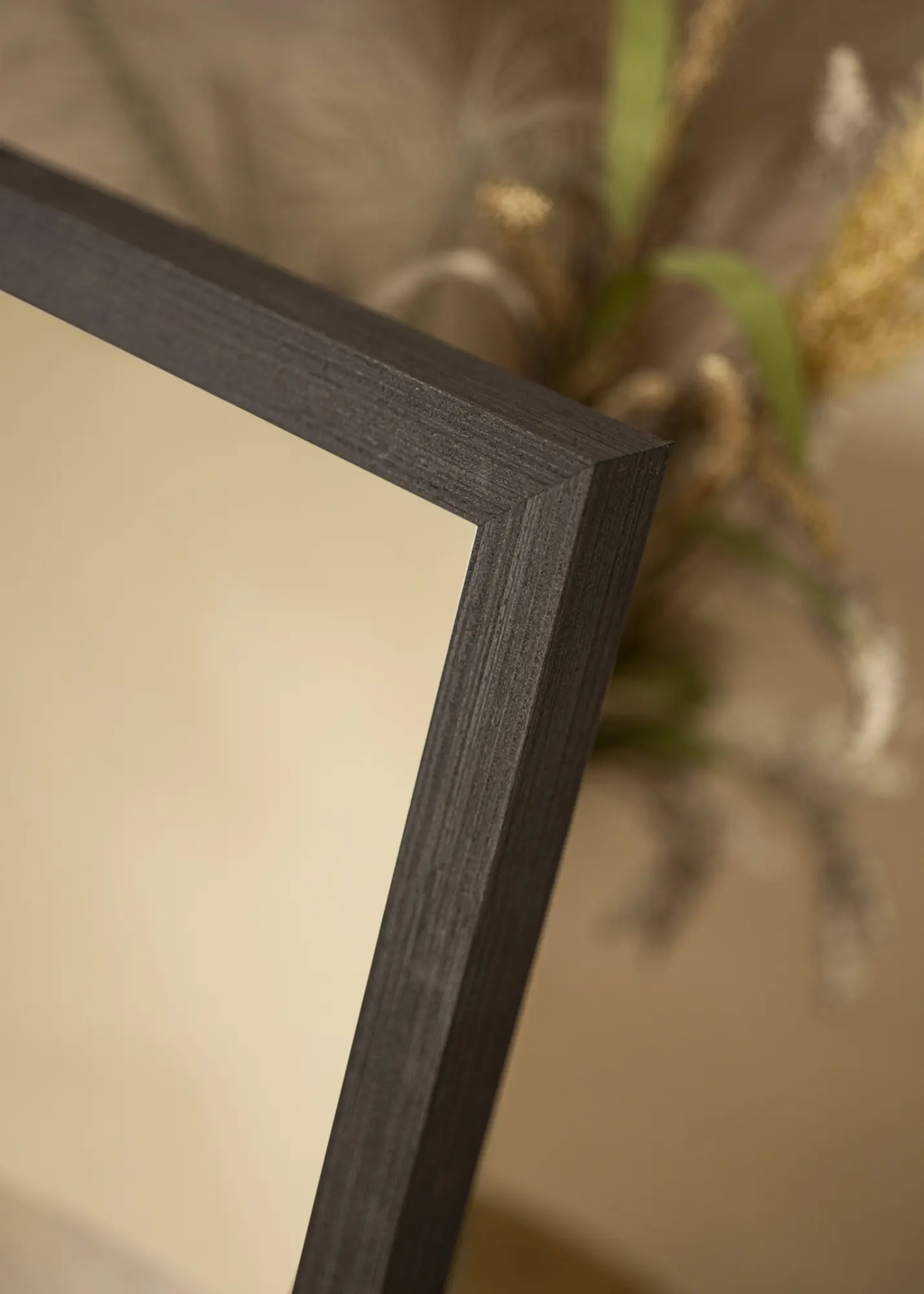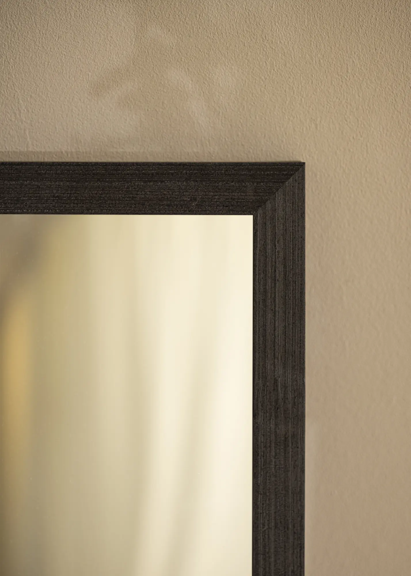 Le cadre du miroir mesure 28 mm de large et a une profondeur de 33 mm, ce qui offre une sensation stable et robuste sans dominer la pièce. La couleur noire du cadre ajoute une touche moderne et crée un beau contraste avec le verre du miroir. Fabriqué en pin, ce miroir offre à la fois durabilité et une sensation naturelle qui complète son apparence élégante.
