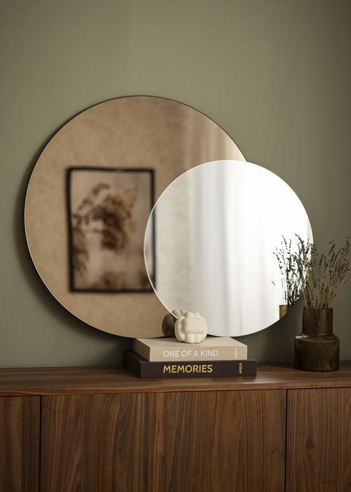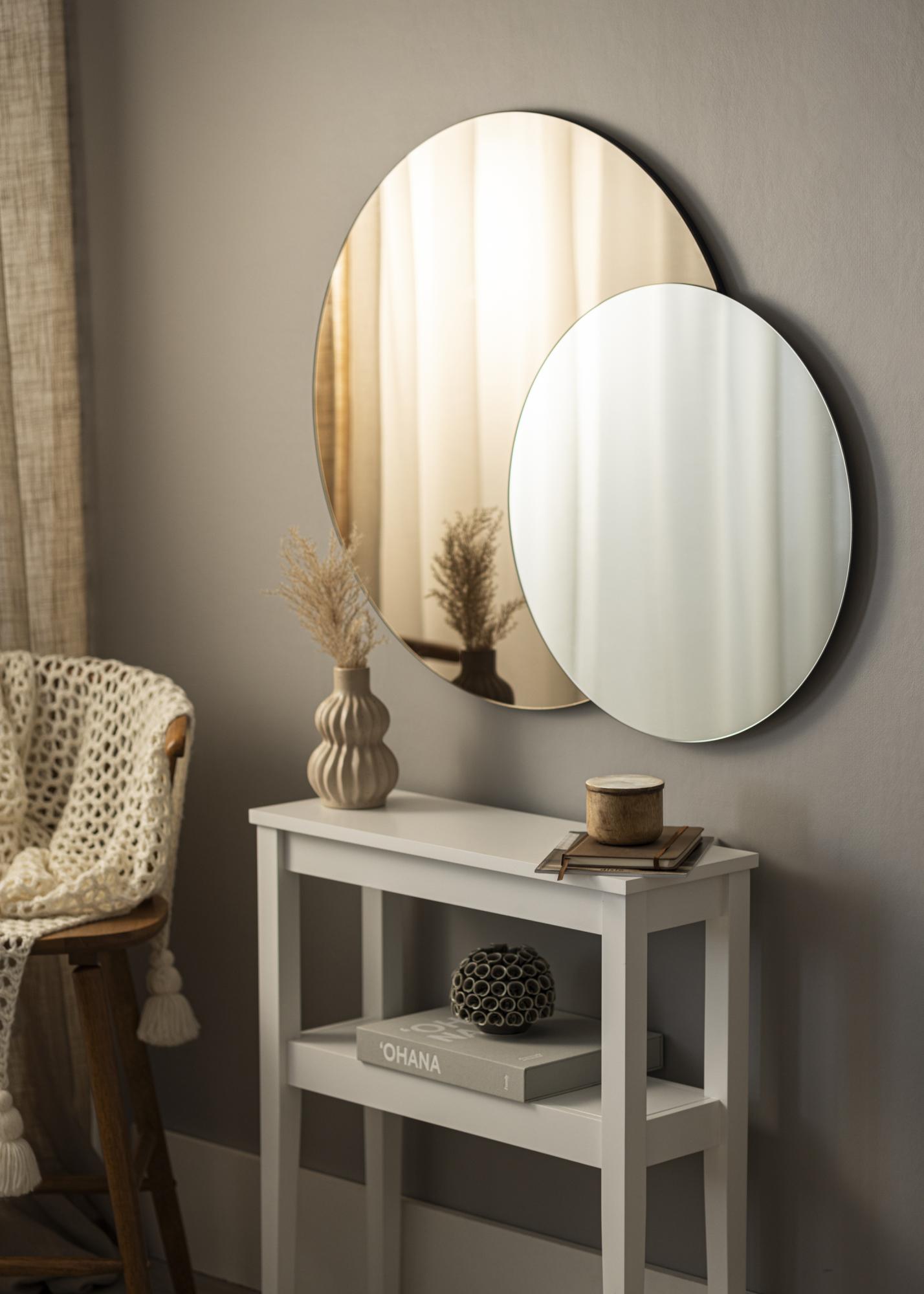 Le danois Incado se cache derrière ce miroir ingénieux et sympathique doté de deux miroirs ronds qui sont associés ensemble. Il est de la taille 80x100 cm et est doté d'un design que vous ne voyez pas tous les jours. Une partie est en bronze foncé et l'autre est incolore.