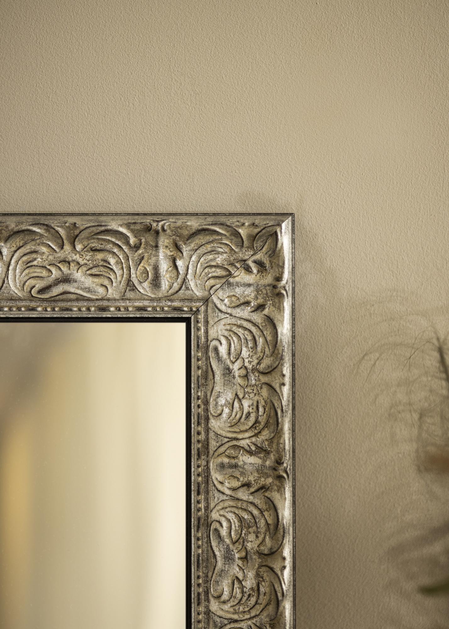 Le miroir Durham Argent est un miroir sur mesure que nous fabriquons pour s'adapter à vos besoins spécifiques. Avec son cadre argenté et sa finition antique, il constitue un ajout élégant à n'importe quelle pièce. La relief ornementée du cadre donne au miroir un caractère unique et contribue à une sensation rustique mais élégante.