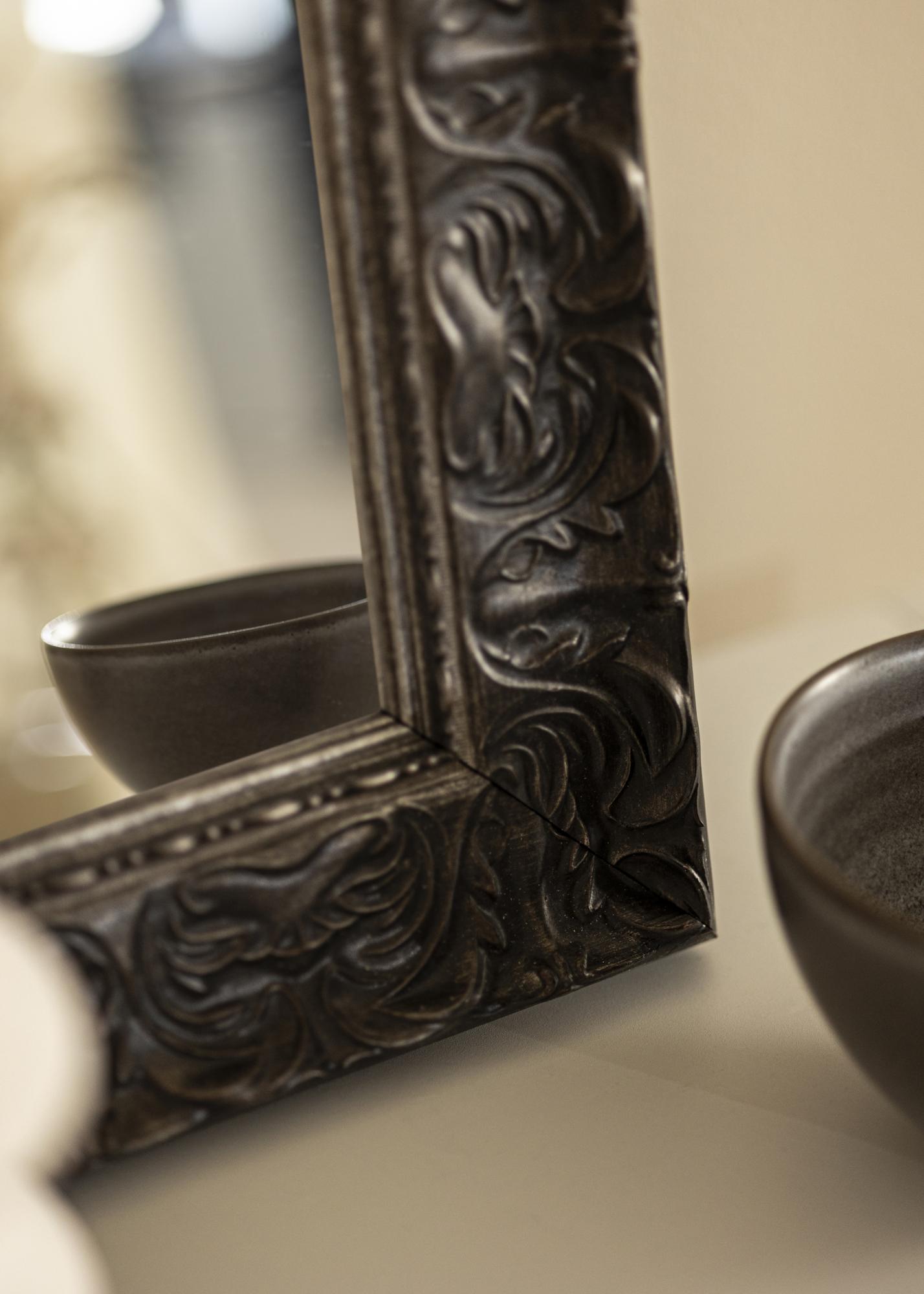 Le cadre du Miroir Durham Noir fait 70 mm de largeur, ce qui donne au miroir un sentiment de robustesse et de solidité. La profondeur de 35 mm contribue à sa stabilité et lui permet de tenir fermement au mur. Fabriqué en pin, ce miroir a une finition brun antique foncé qui lui donne un aspect vieilli, renforçant ainsi son caractère classique et rustique.